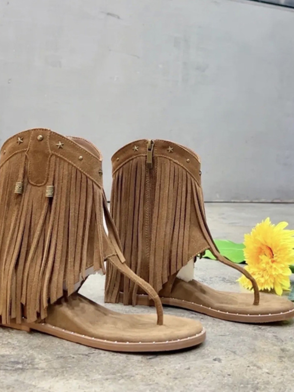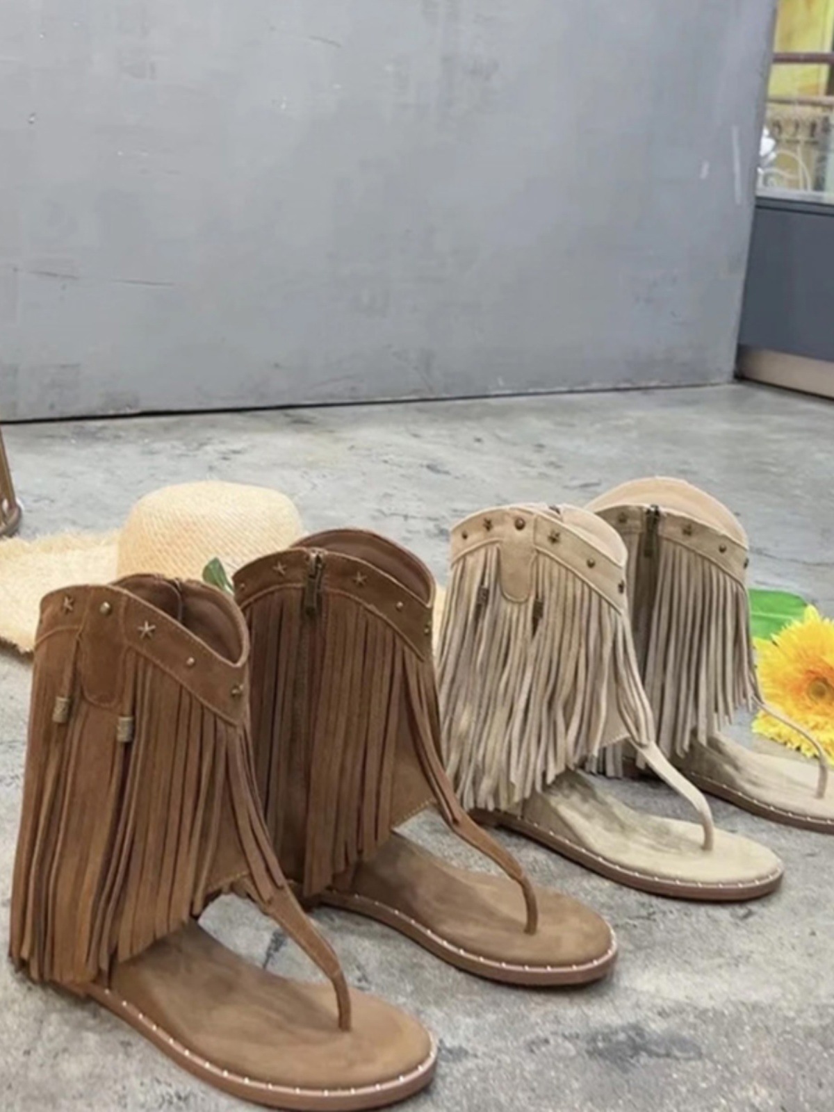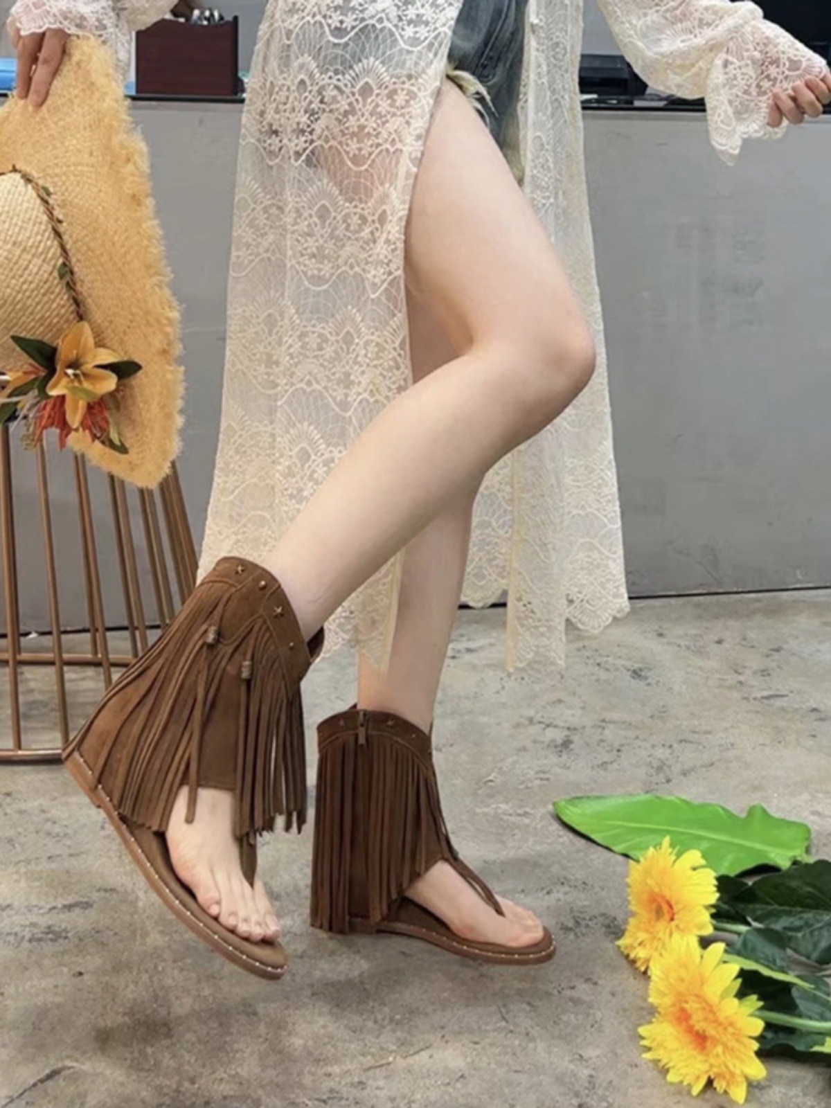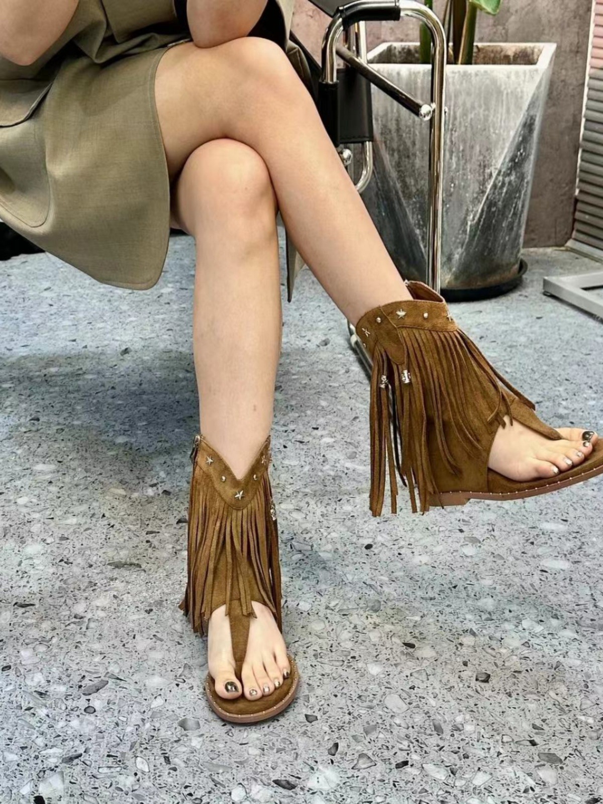 Cowhide 버전 ~ 시원한 여름 레트로 술 할로우 플립 플롭 여성용 내부 높이 클립 발가락 비치 샌들 부츠