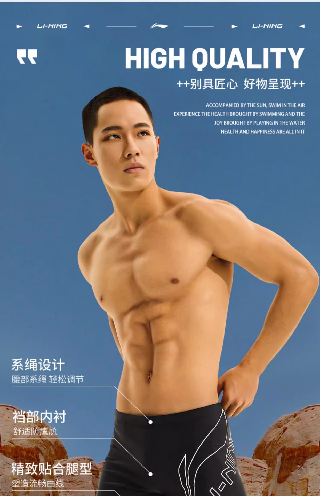 Li Ning 수영 바지 남성용 당황 방지 수영 바지 남성용 수영복 2025 새로운 복서 대형 전문 수영 장비