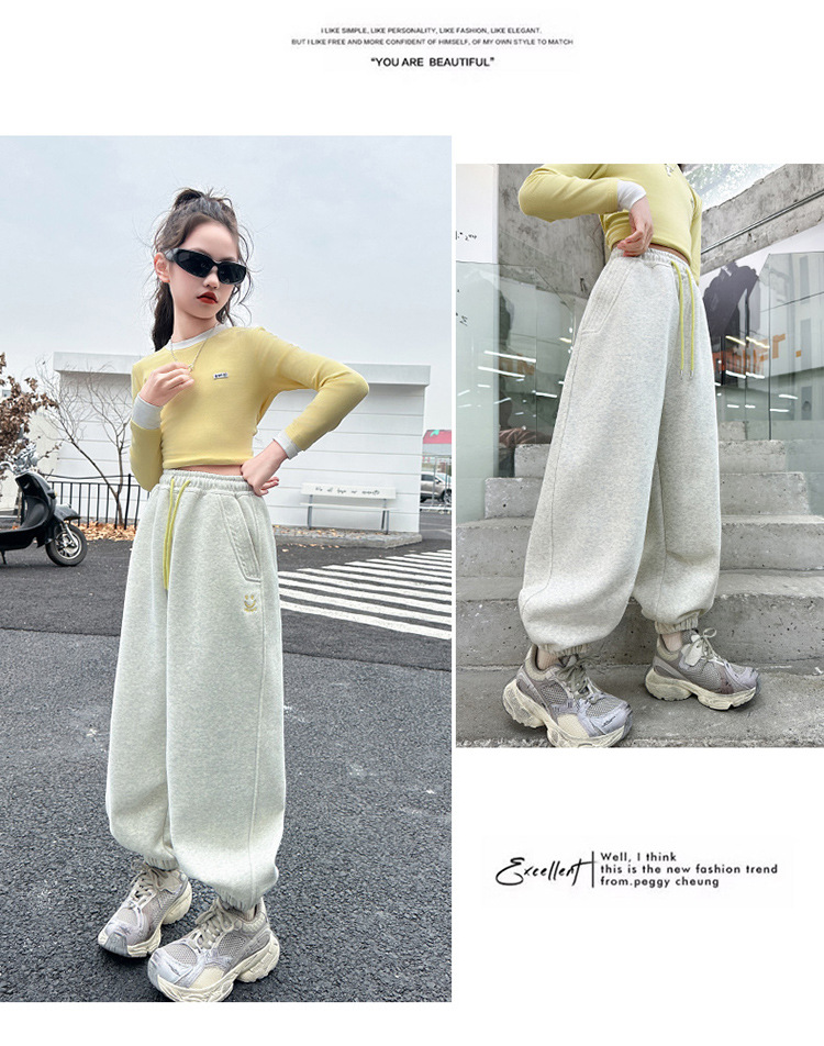 소녀의 봄과 가을 바지 2025 새로운 어린이 서양식 가을 원피스 바지 큰 어린이 캐주얼 바지 스포츠 바지스토어 가기