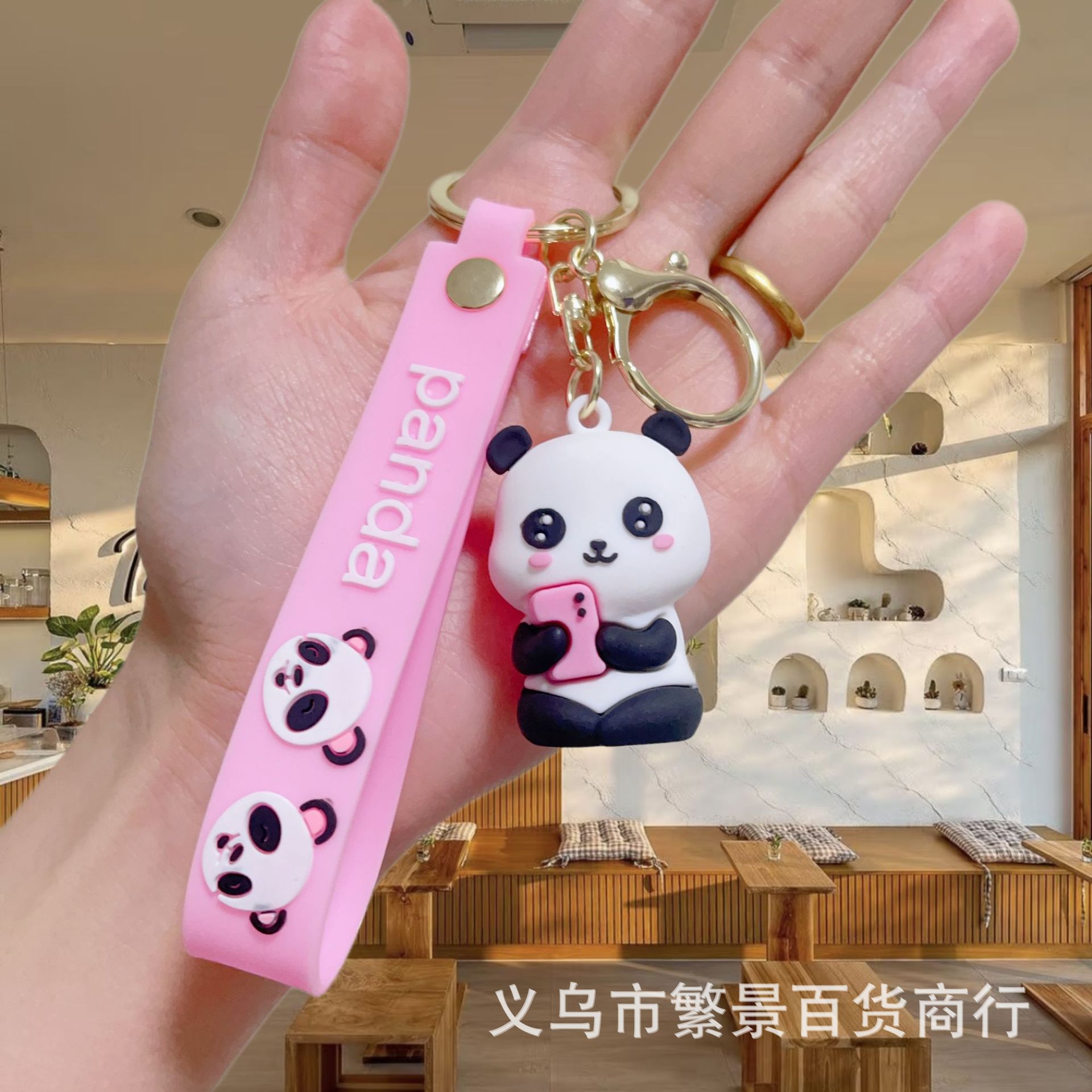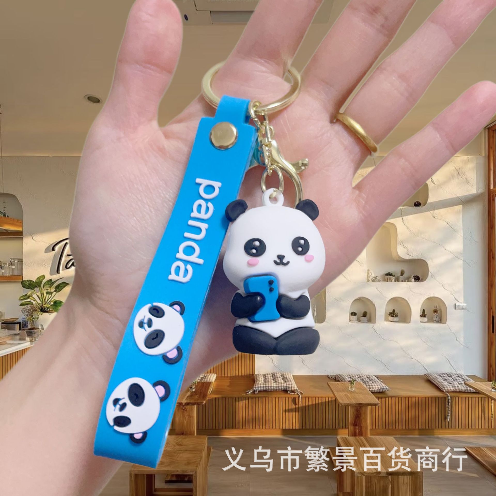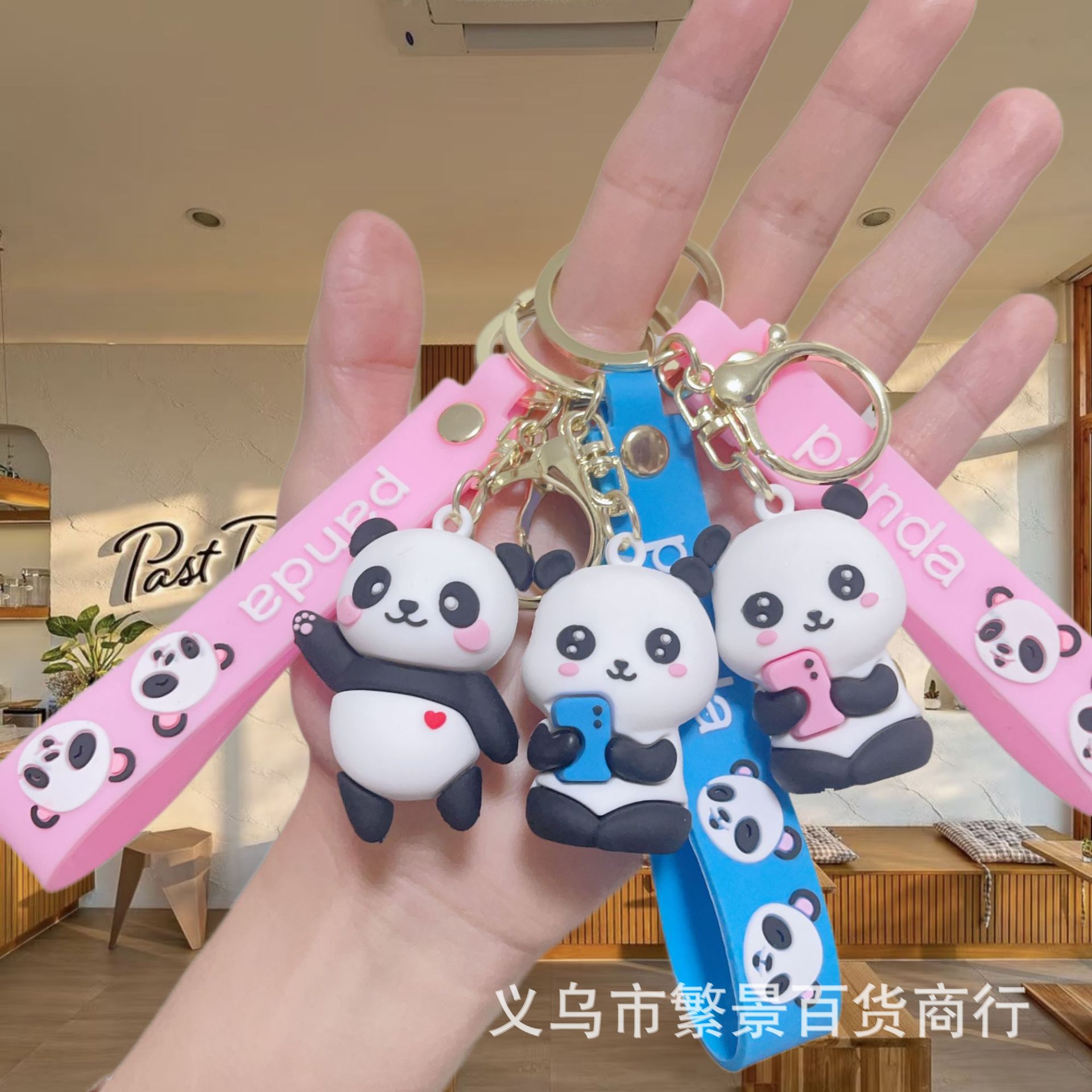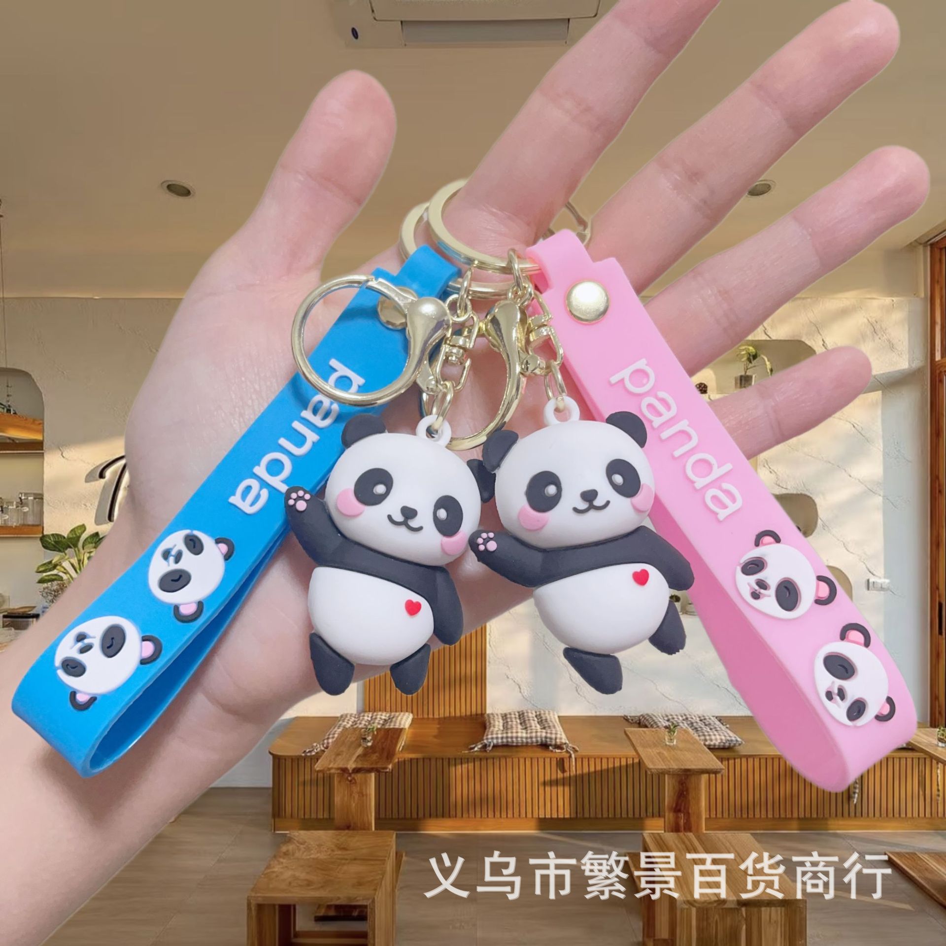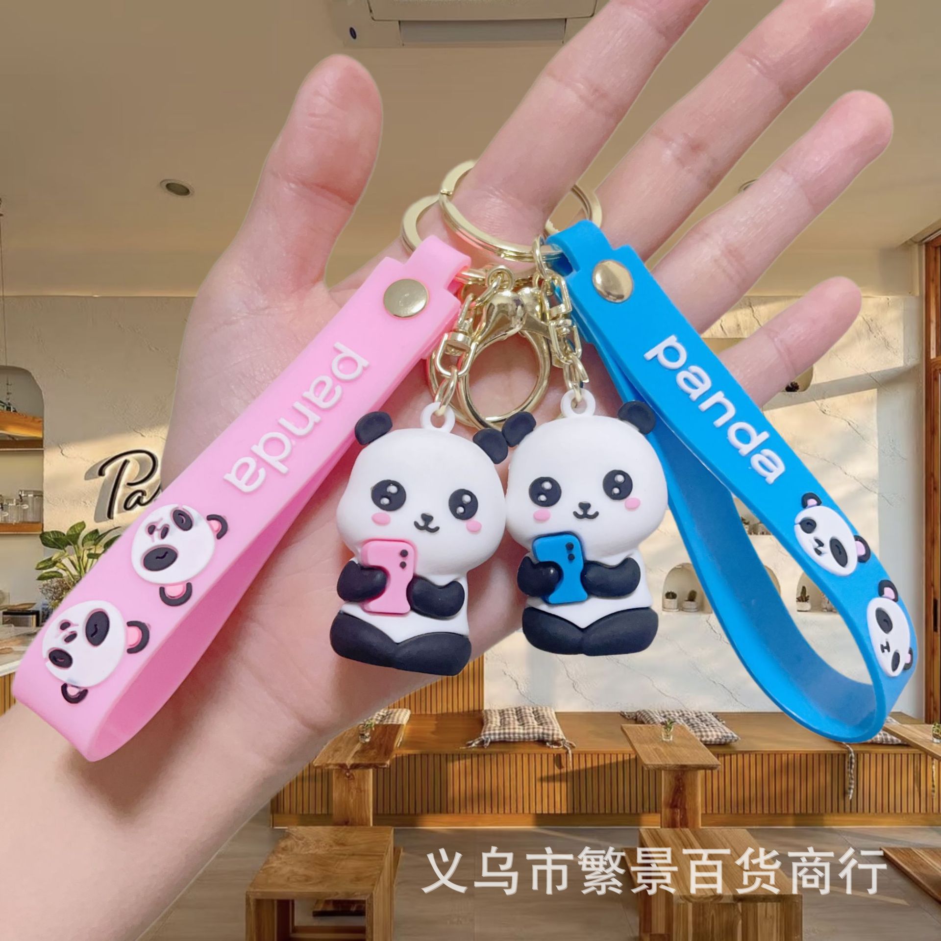 국경 간 귀여운 만화 커플 작은 팬더 키 체인 펜던트 자동차 커플 가방 키 링 체인 선물 도매스토어 가기