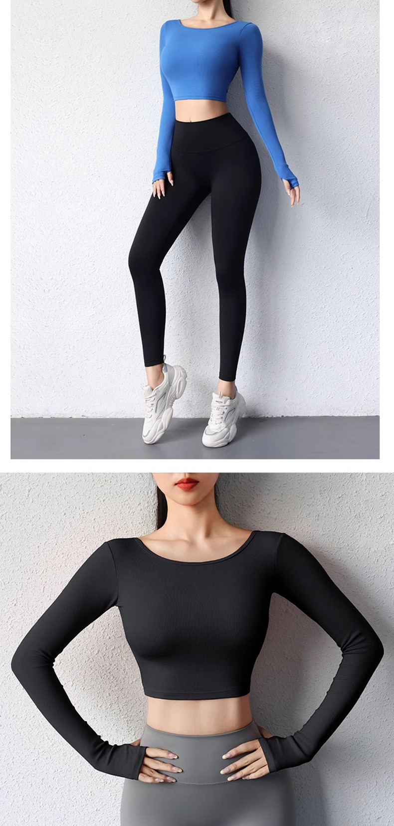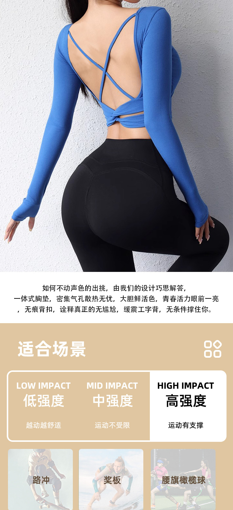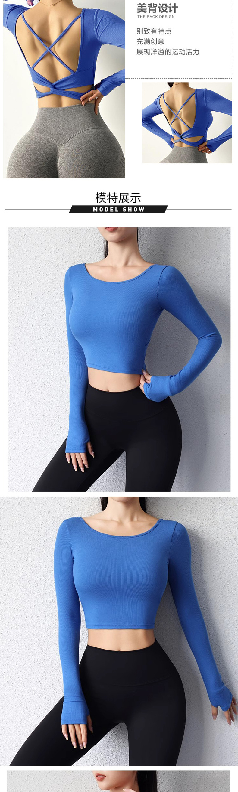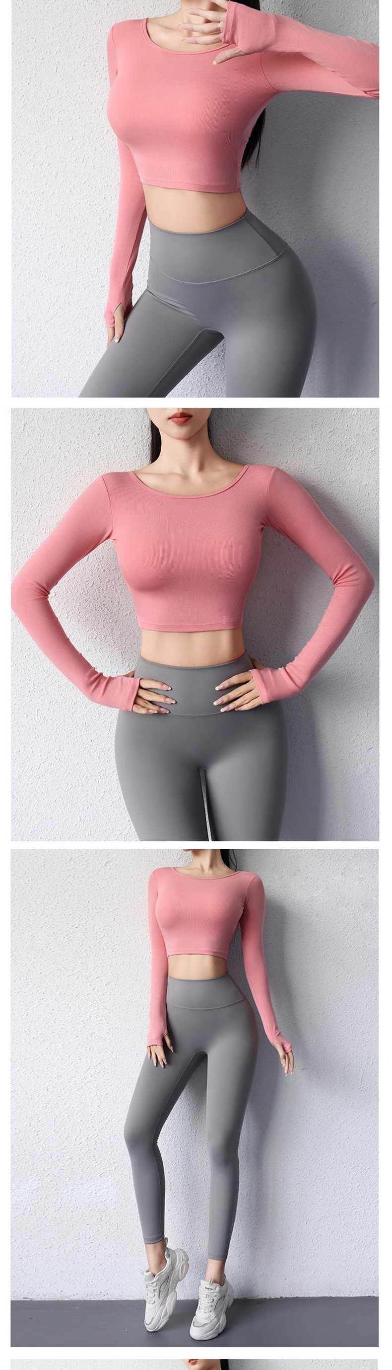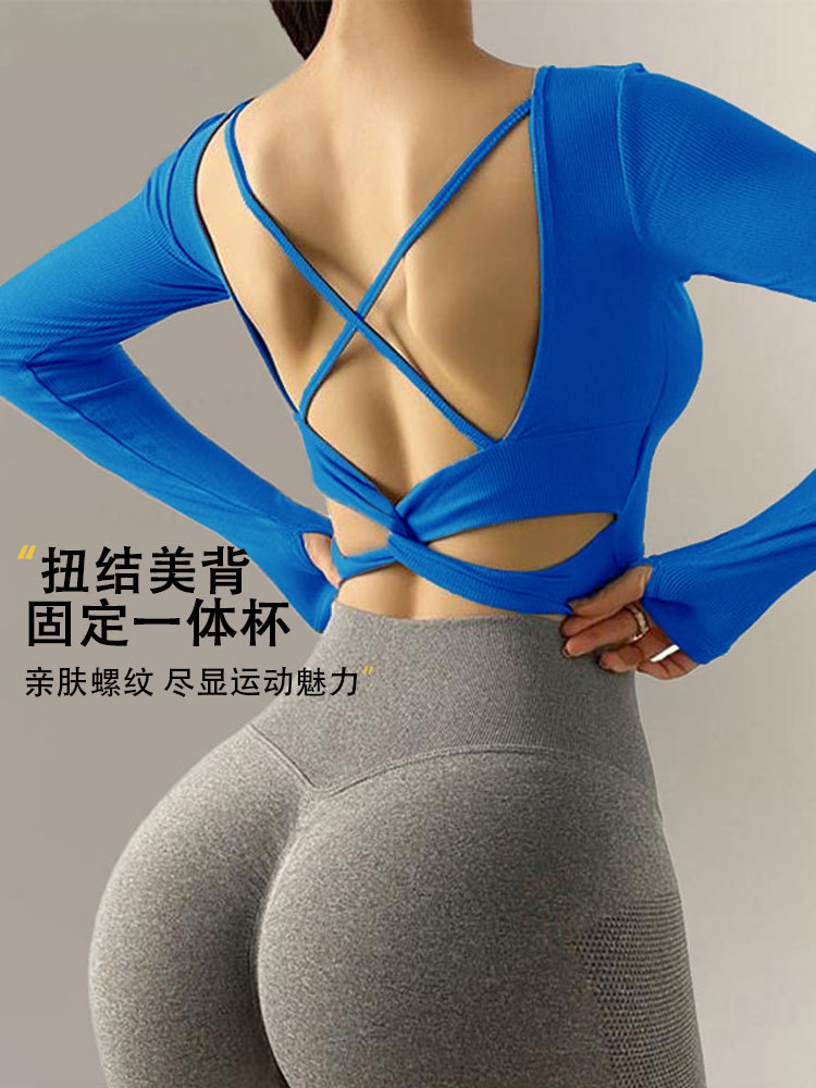 뛰어난 미적 백 요가 세트 긴 소매 여성의 2025 새로운 스타일 스포츠 타이트 전문 필라테스 탑 가슴 패드