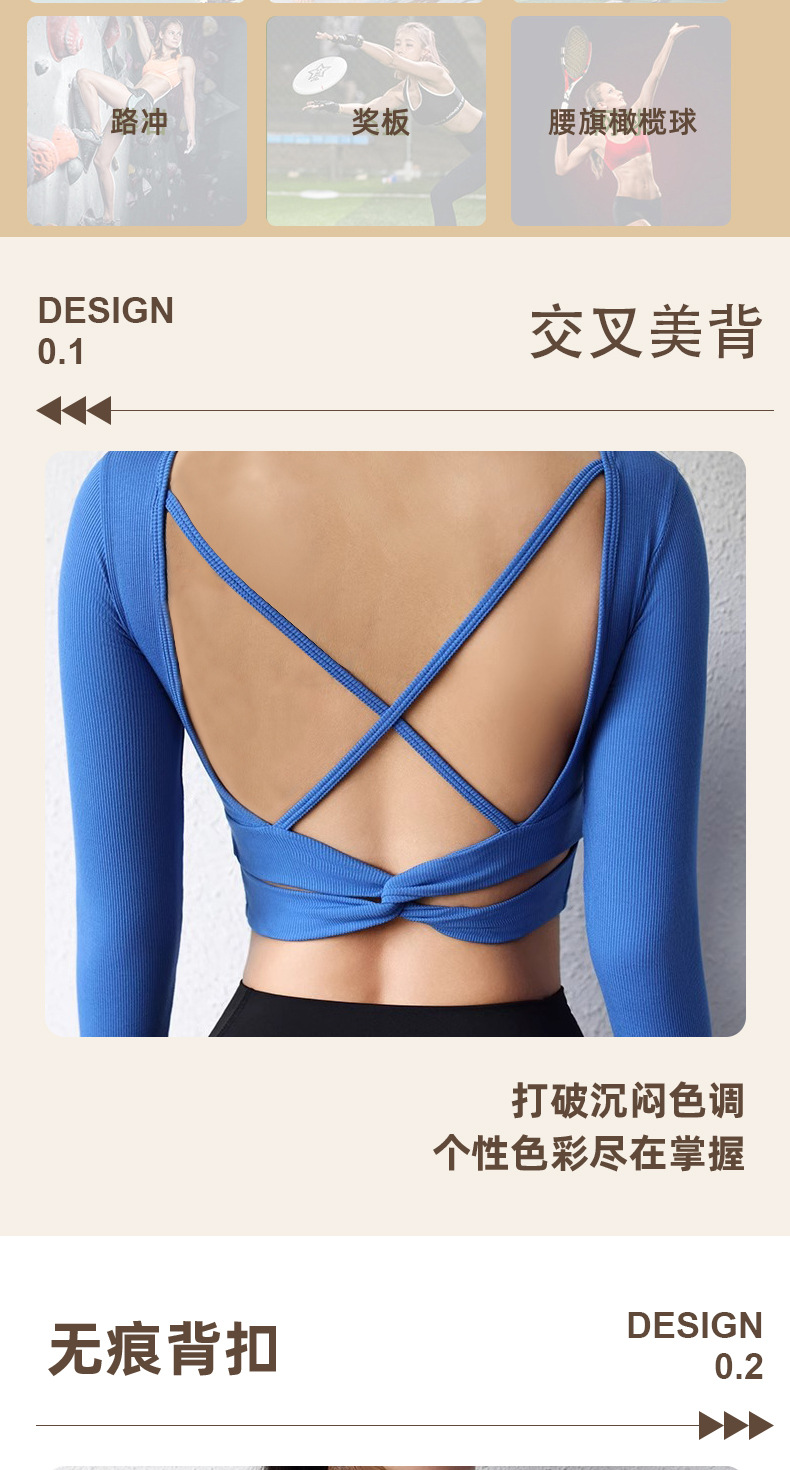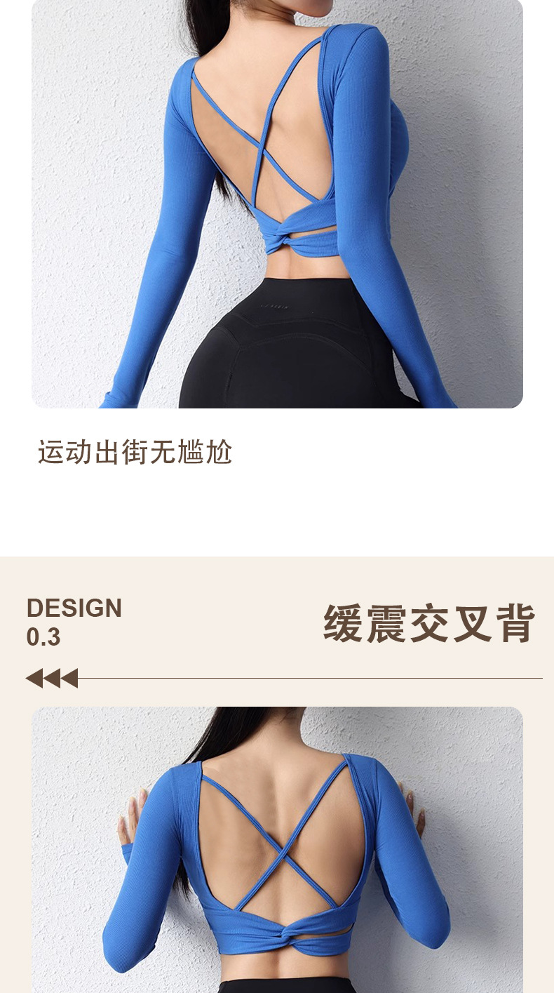 뛰어난 미적 백 요가 세트 긴 소매 여성의 2025 새로운 스타일 스포츠 타이트 전문 필라테스 탑 가슴 패드스토어 가기