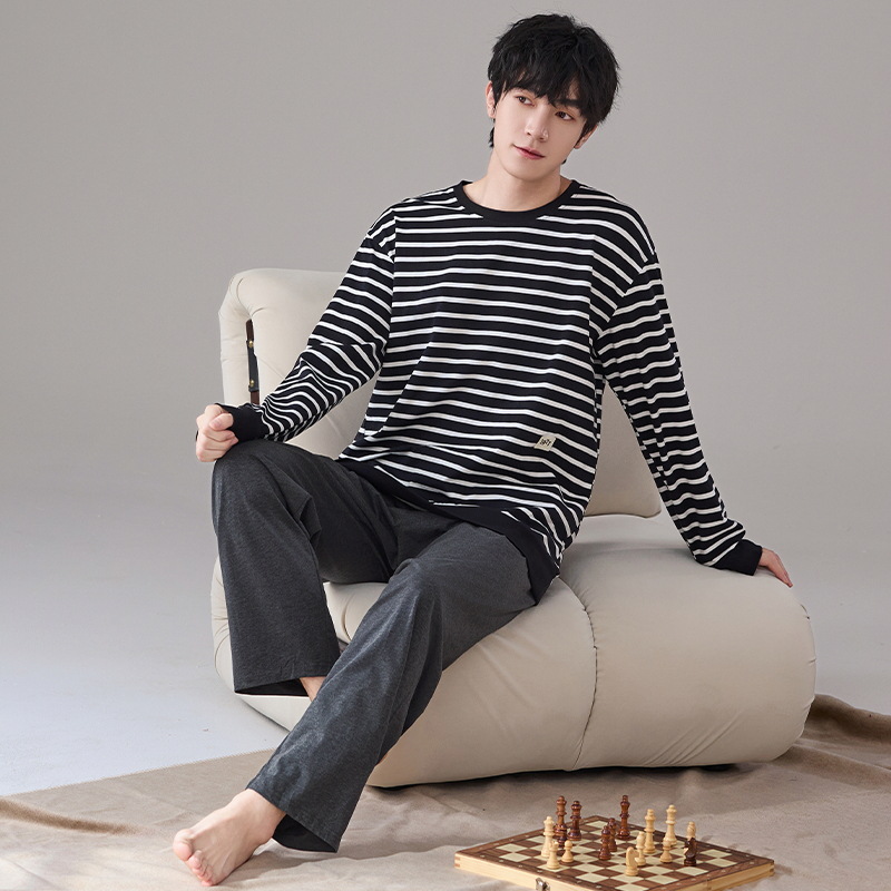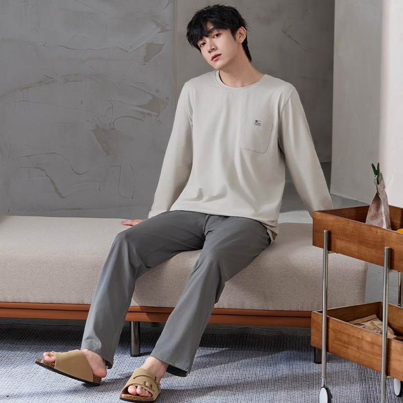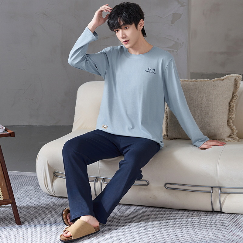 클래스 A 항균 순면 잠옷 남자 봄과 가을 긴팔 크루 넥 풀오버 남자 다리 플러스 사이즈 의상 홈 옷스토어 가기