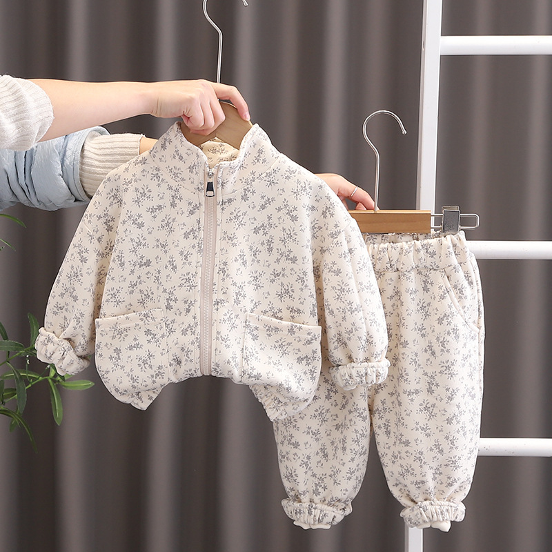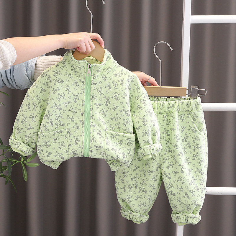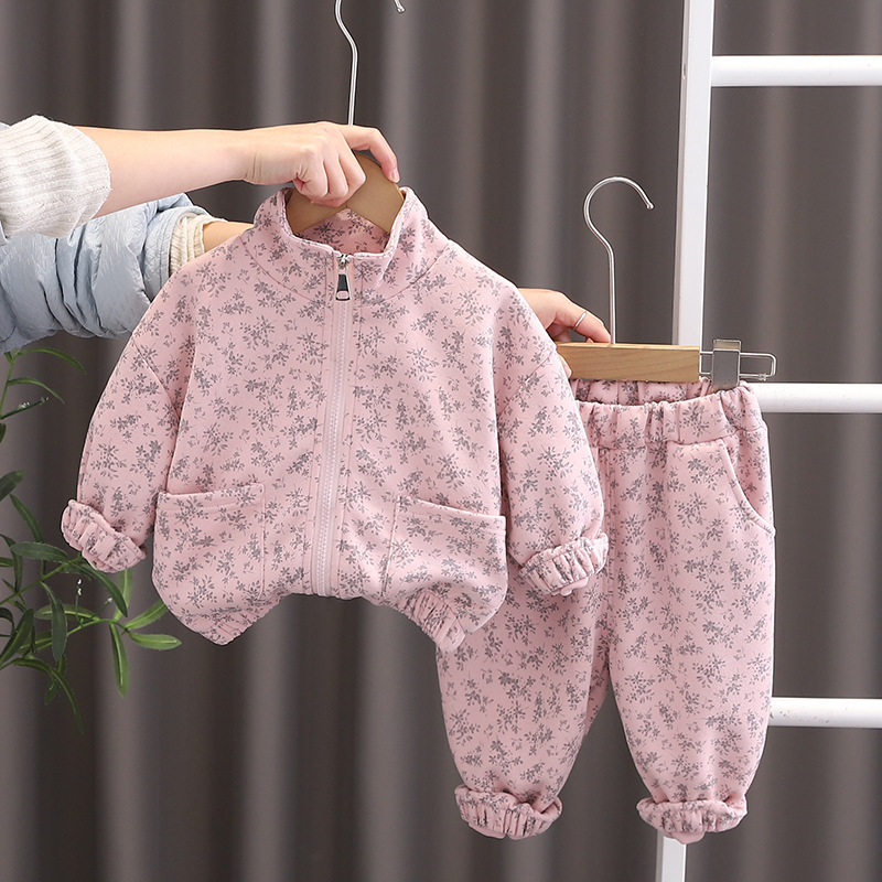 봄 새 소년 패션 프라이드 스트리트 전체 인쇄 작은 꽃 긴 소매 투피스 아기 세련된 긴 소매 세트 트렌디