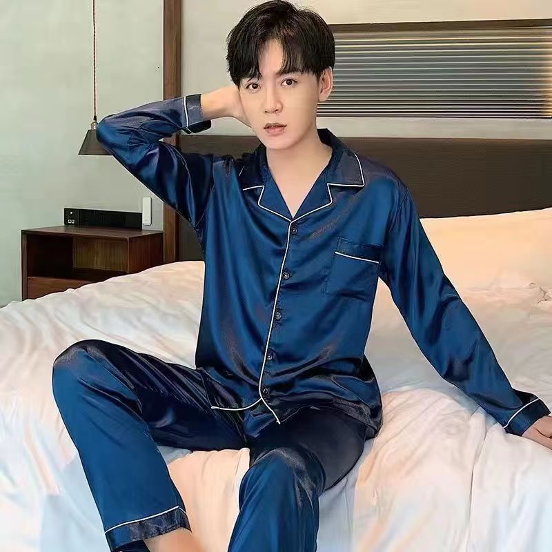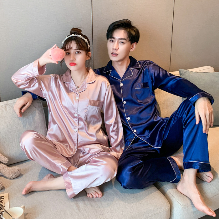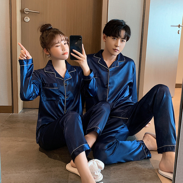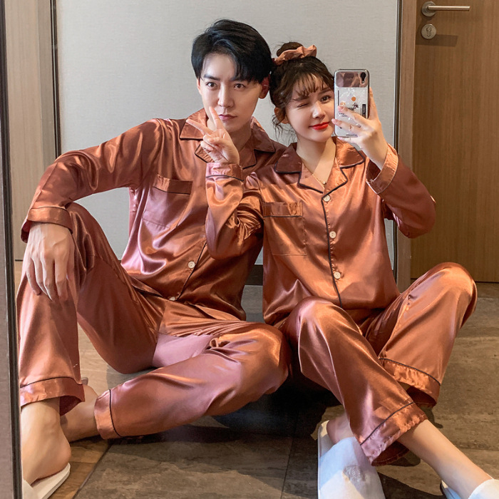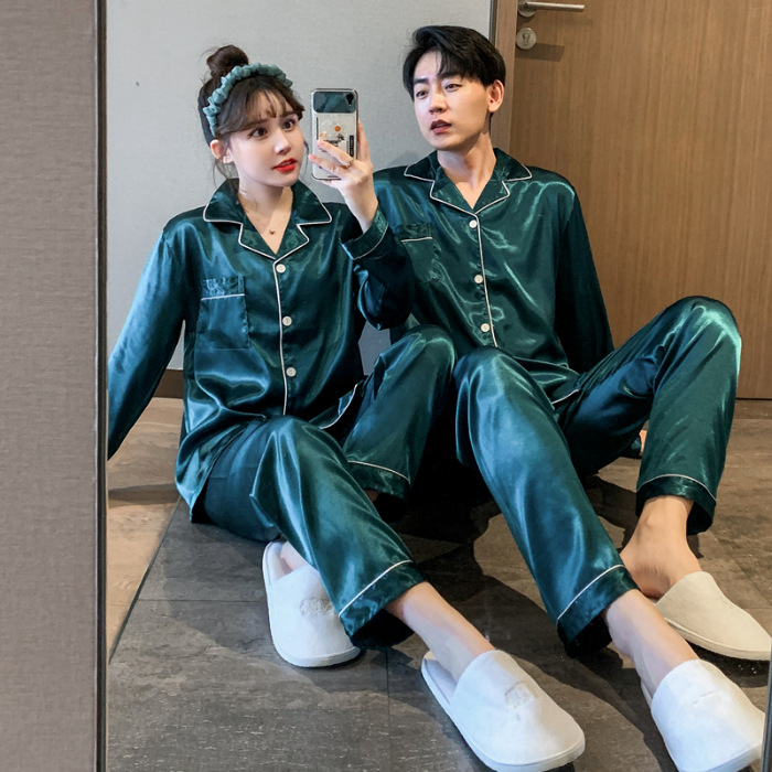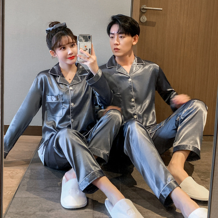 대외 무역 포장 긴 소매 바지 봄과 가을 여름 얇은 플러스 사이즈 지방 코드 아이스 실크 커플 파자마 하이 엔드 홈 의류스토어 가기