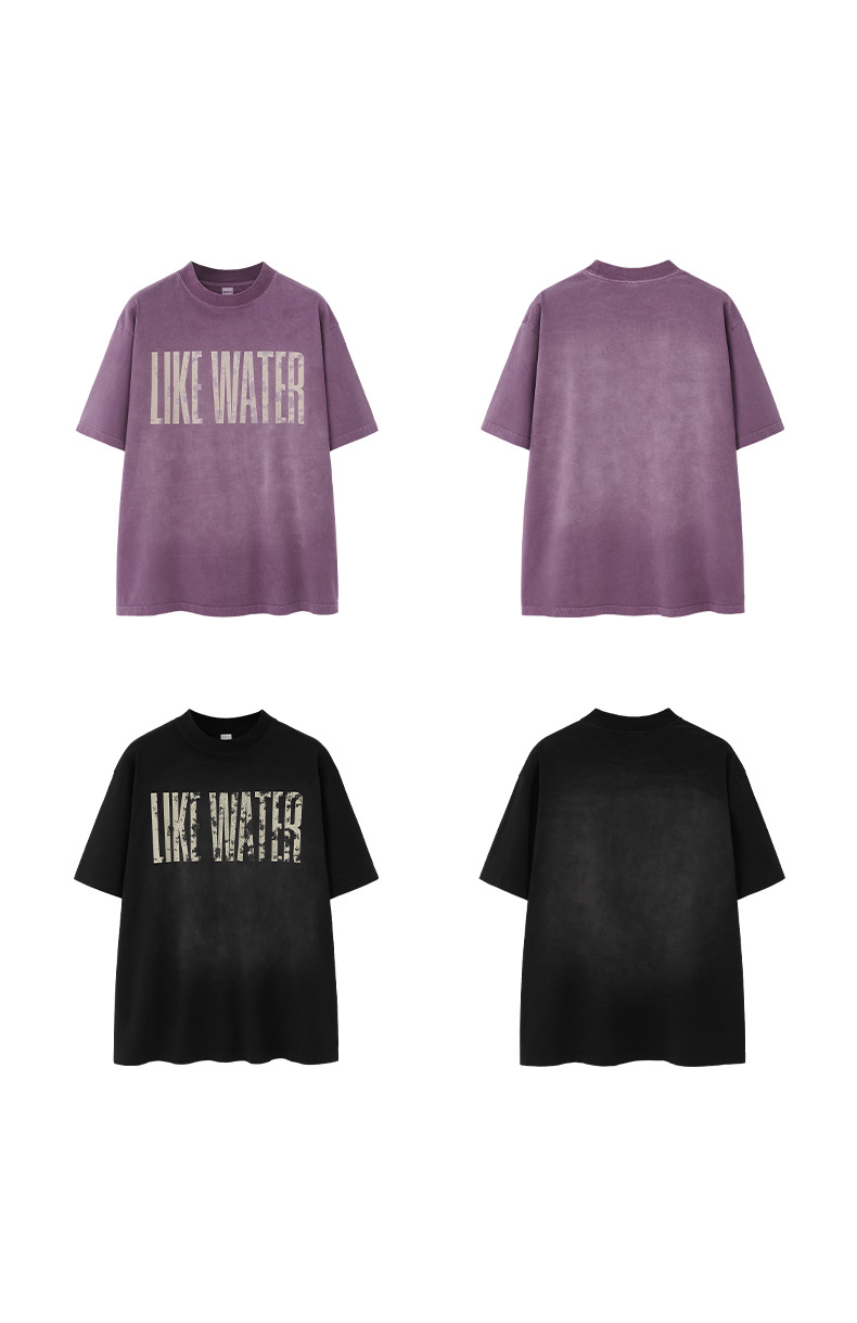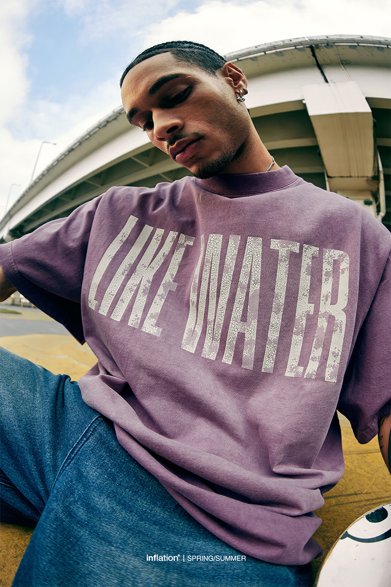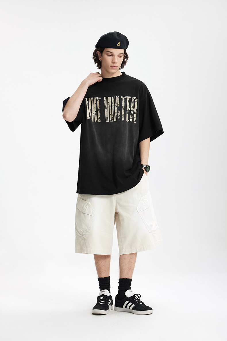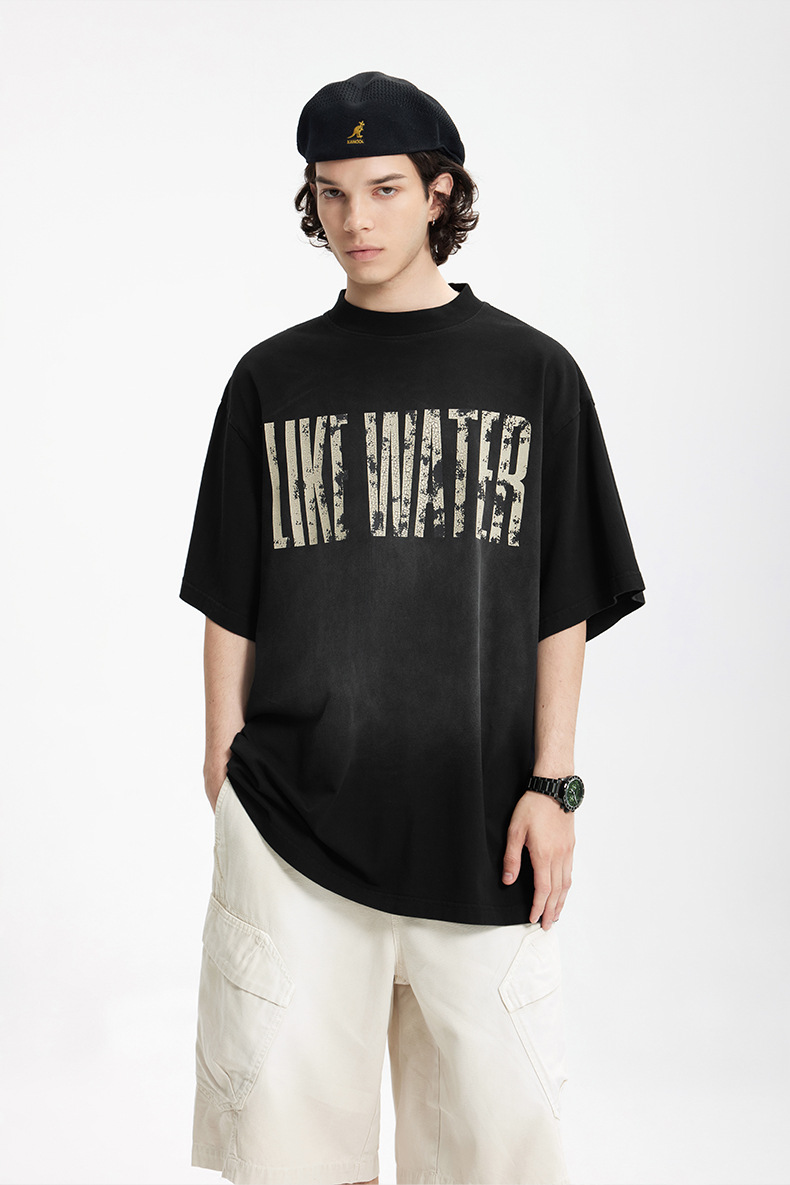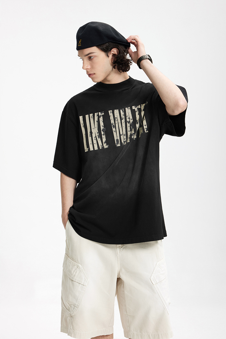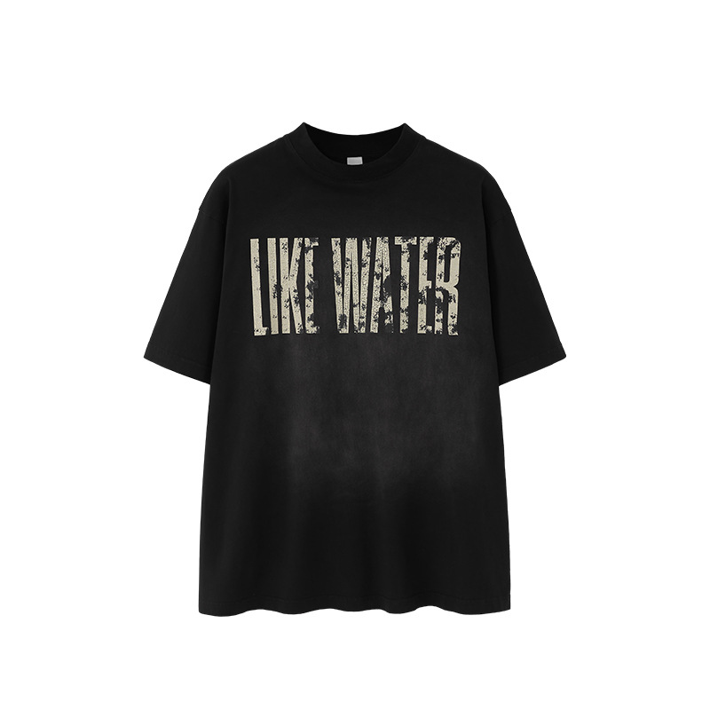 Jie Zhan 남성복 | 레트로 균열 스프레이 마지 워시 워터 프린트 티셔츠 2025 봄/여름 새로운 패션 브랜드 느슨한 짧은 소매스토어 가기