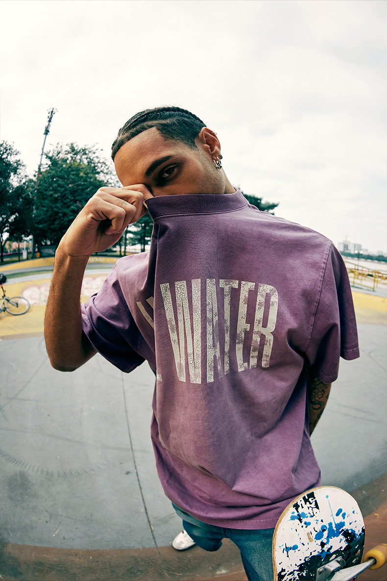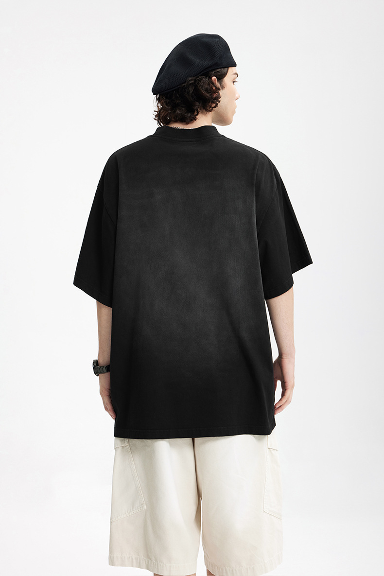 Jie Zhan 남성복 | 레트로 균열 스프레이 마지 워시 워터 프린트 티셔츠 2025 봄/여름 새로운 패션 브랜드 느슨한 짧은 소매