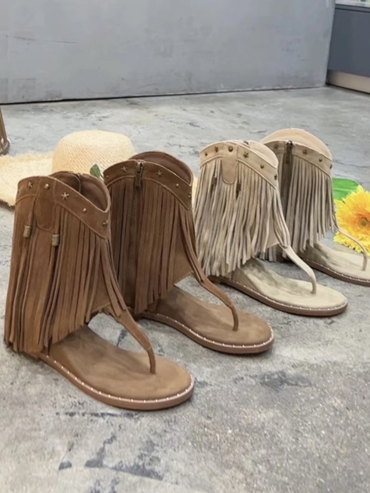 Cowhide 버전 ~ 시원한 여름 레트로 술 할로우 플립 플롭 여성용 내부 높이 클립 발가락 비치 샌들 부츠