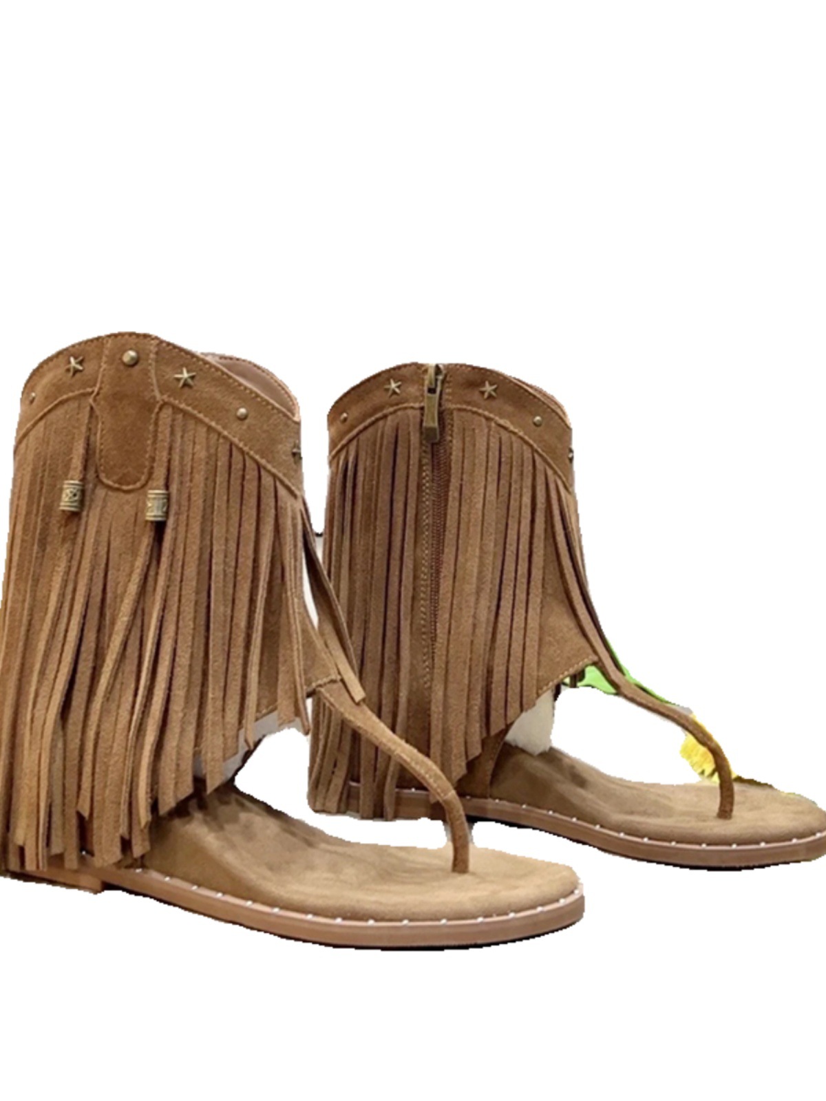 Cowhide 버전 ~ 시원한 여름 레트로 술 할로우 플립 플롭 여성용 내부 높이 클립 발가락 비치 샌들 부츠스토어 가기