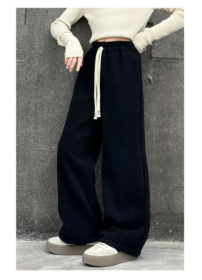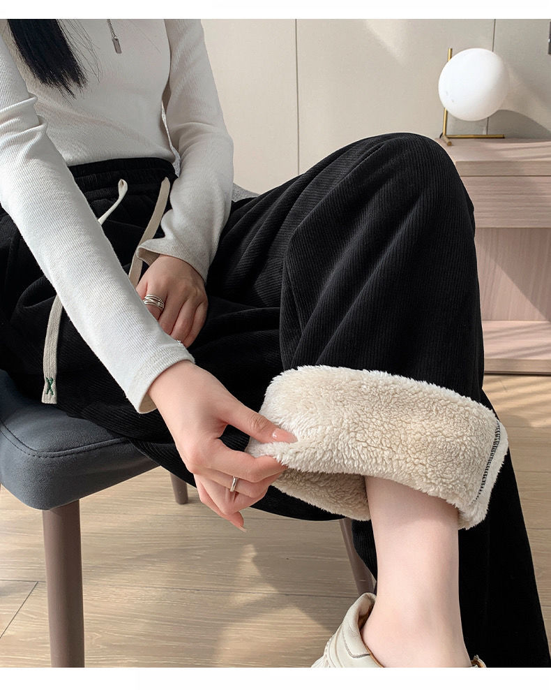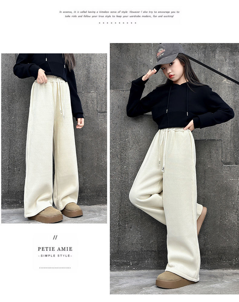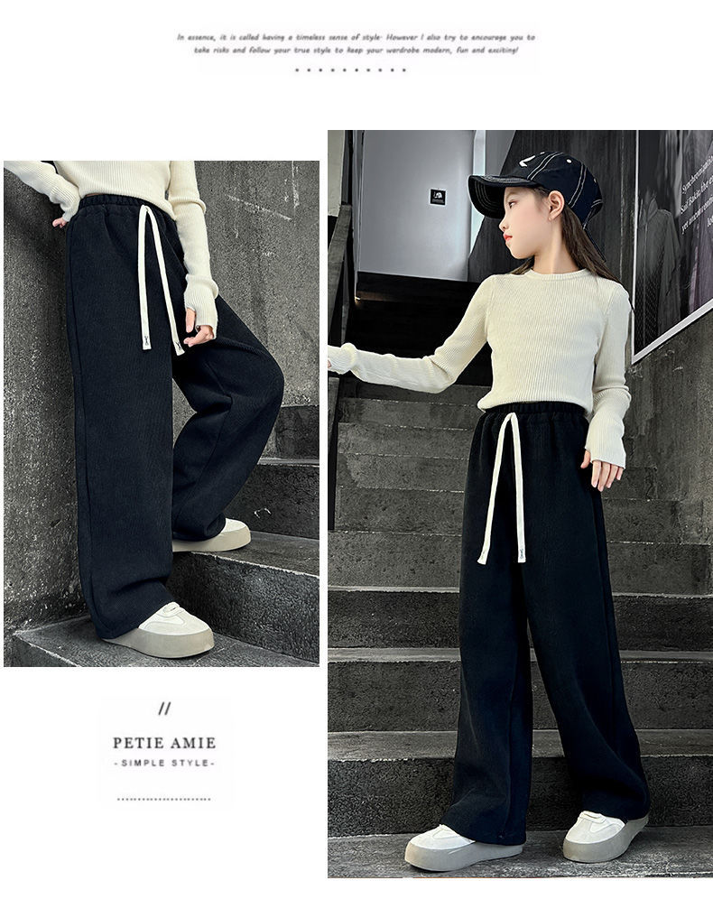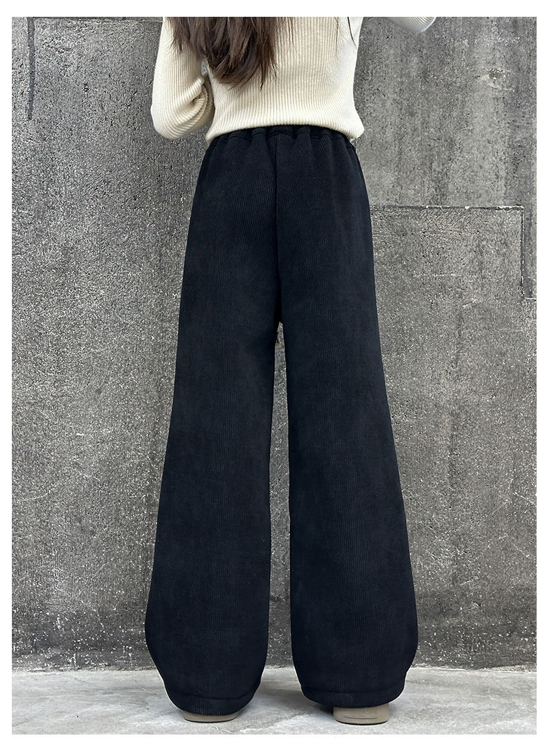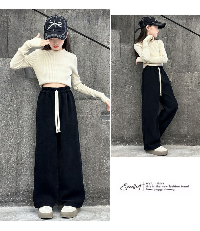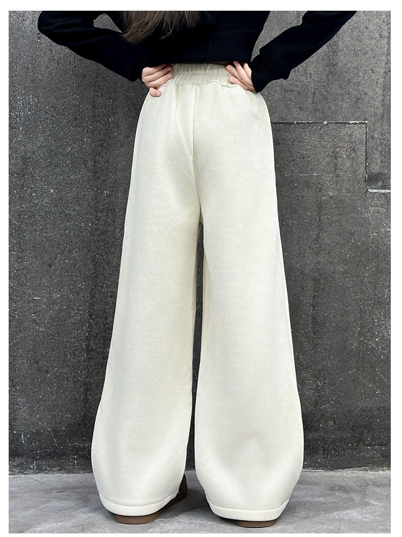 2025 소녀 바지 기모 양고기 벨벳 슈퍼 두꺼운 넓은 다리 바지 큰 아이들 방한 원피스 벨벳 따뜻한 바지를 입고