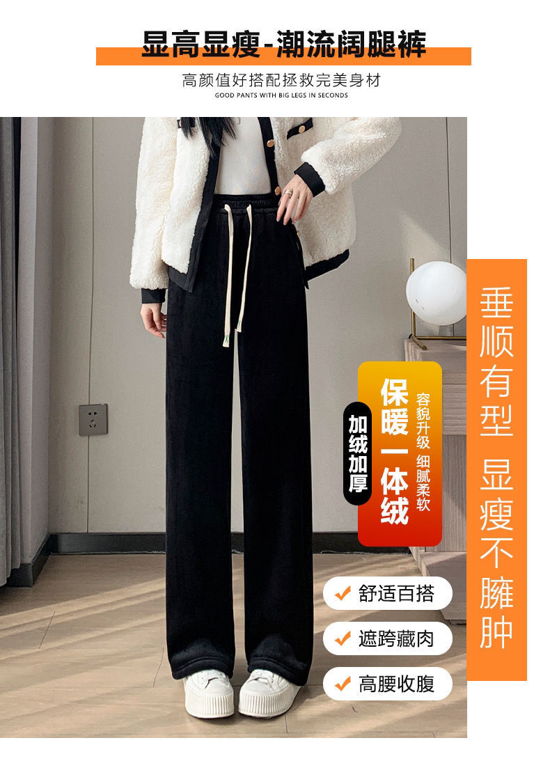 2025 소녀 바지 기모 양고기 벨벳 슈퍼 두꺼운 넓은 다리 바지 큰 아이들 방한 원피스 벨벳 따뜻한 바지를 입고스토어 가기