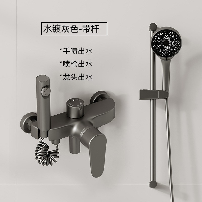 총회색 전체 구리 심플 샤워 세트, 냉온수 가정용 지붕 없는 욕실 일체형 샤워 세트스토어 가기