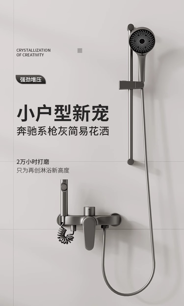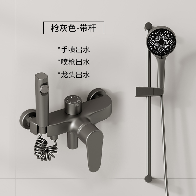 총회색 전체 구리 심플 샤워 세트, 냉온수 가정용 지붕 없는 욕실 일체형 샤워 세트