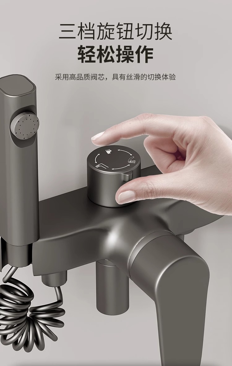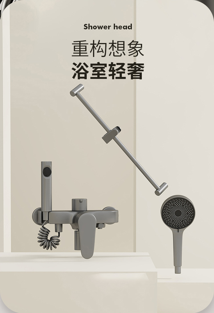 • [공식 정품] 전체 구리 몸체 + 핸드 샤워 헤드가 포함된 워터 도금 그레이 모델