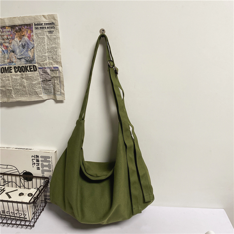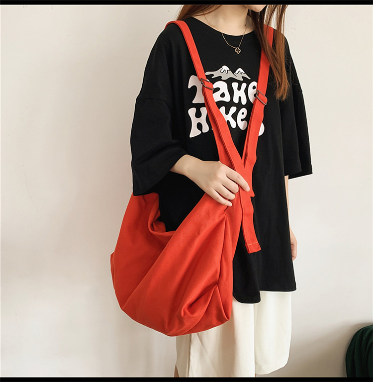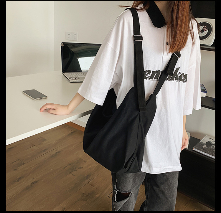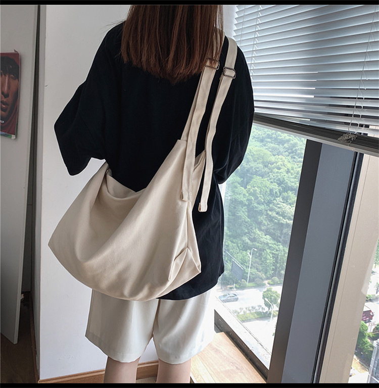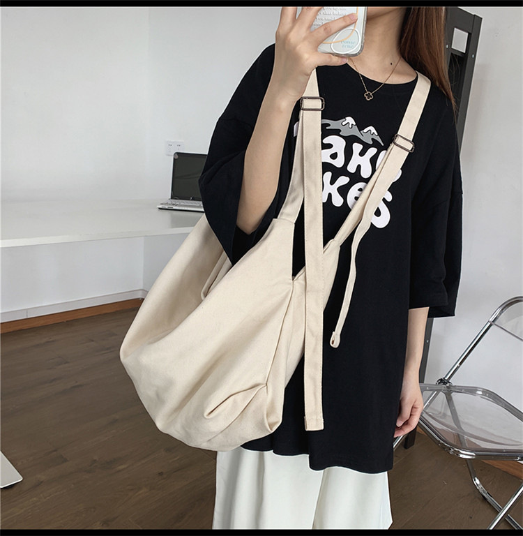 Shen Yi의 예술적 대용량 캔버스 가방 유행 일본 스타일 캐주얼 게으른 스타일 올 매치 크로스 바디 한국 스타일 가방스토어 가기