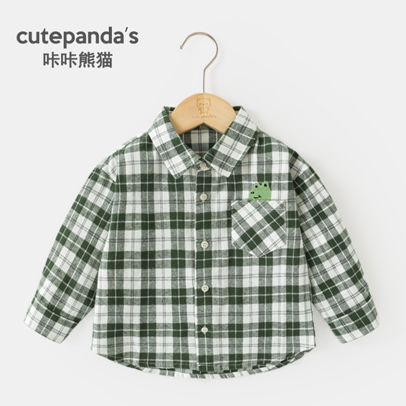 카카 팬더 어린이 긴팔 체크 셔츠 유아 봄옷 봄가을 남아 셔츠 여아 아기 상의 아동복스토어 가기