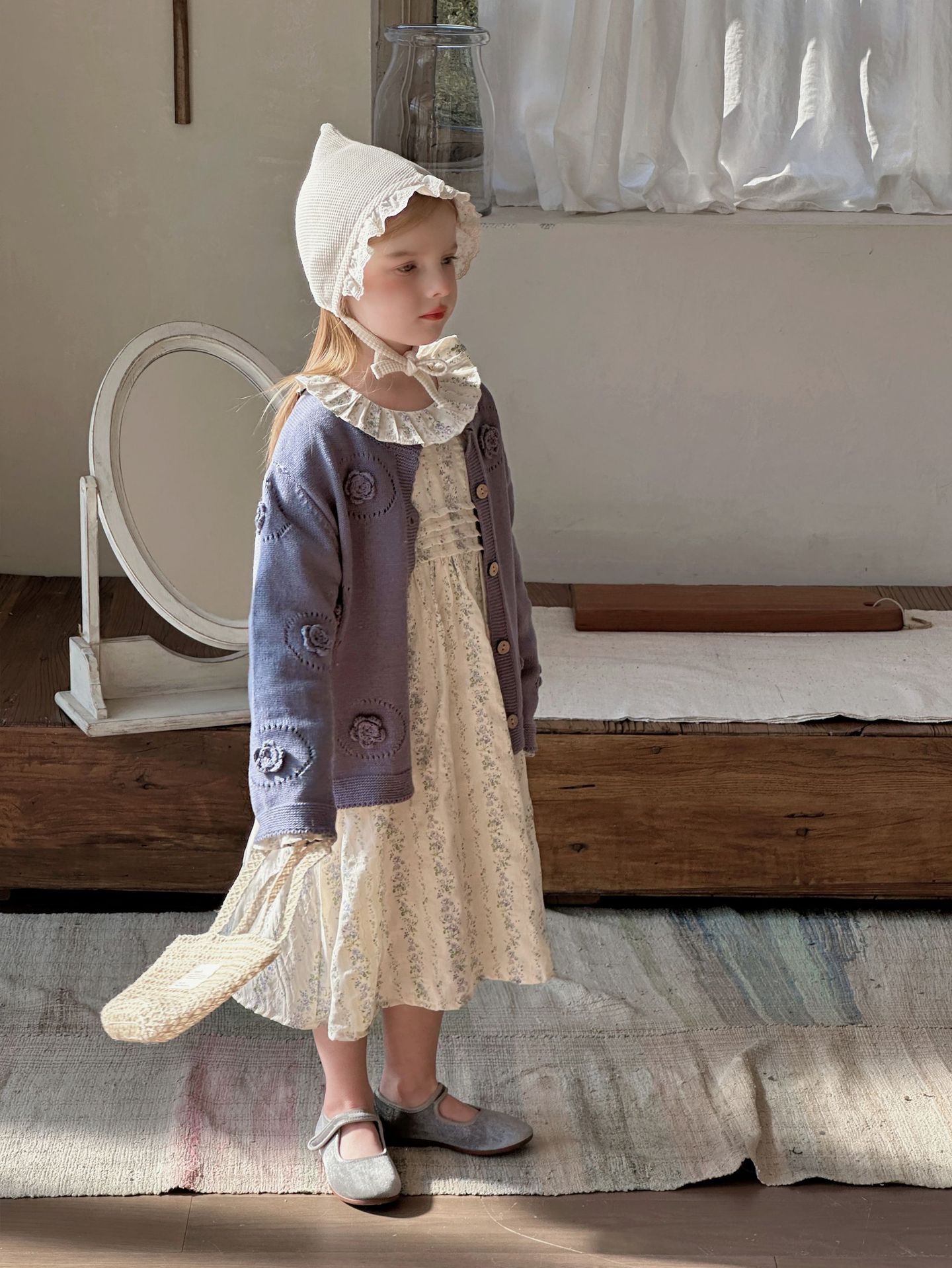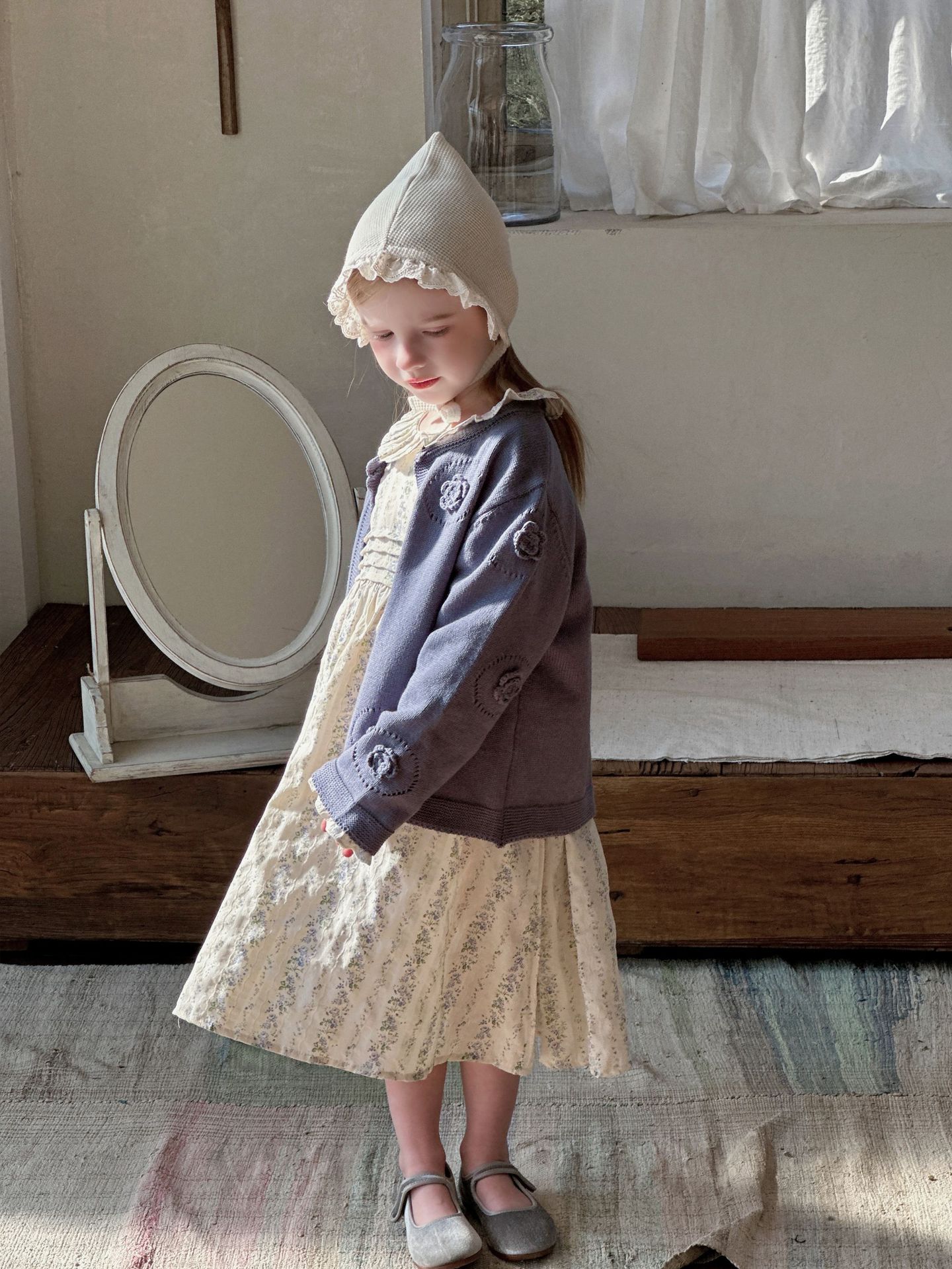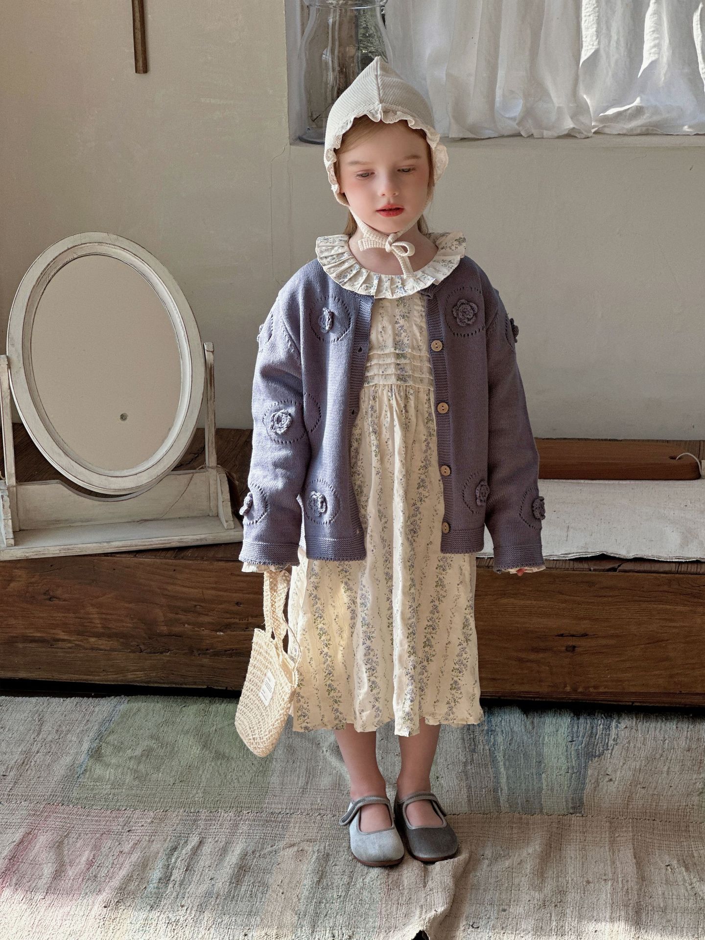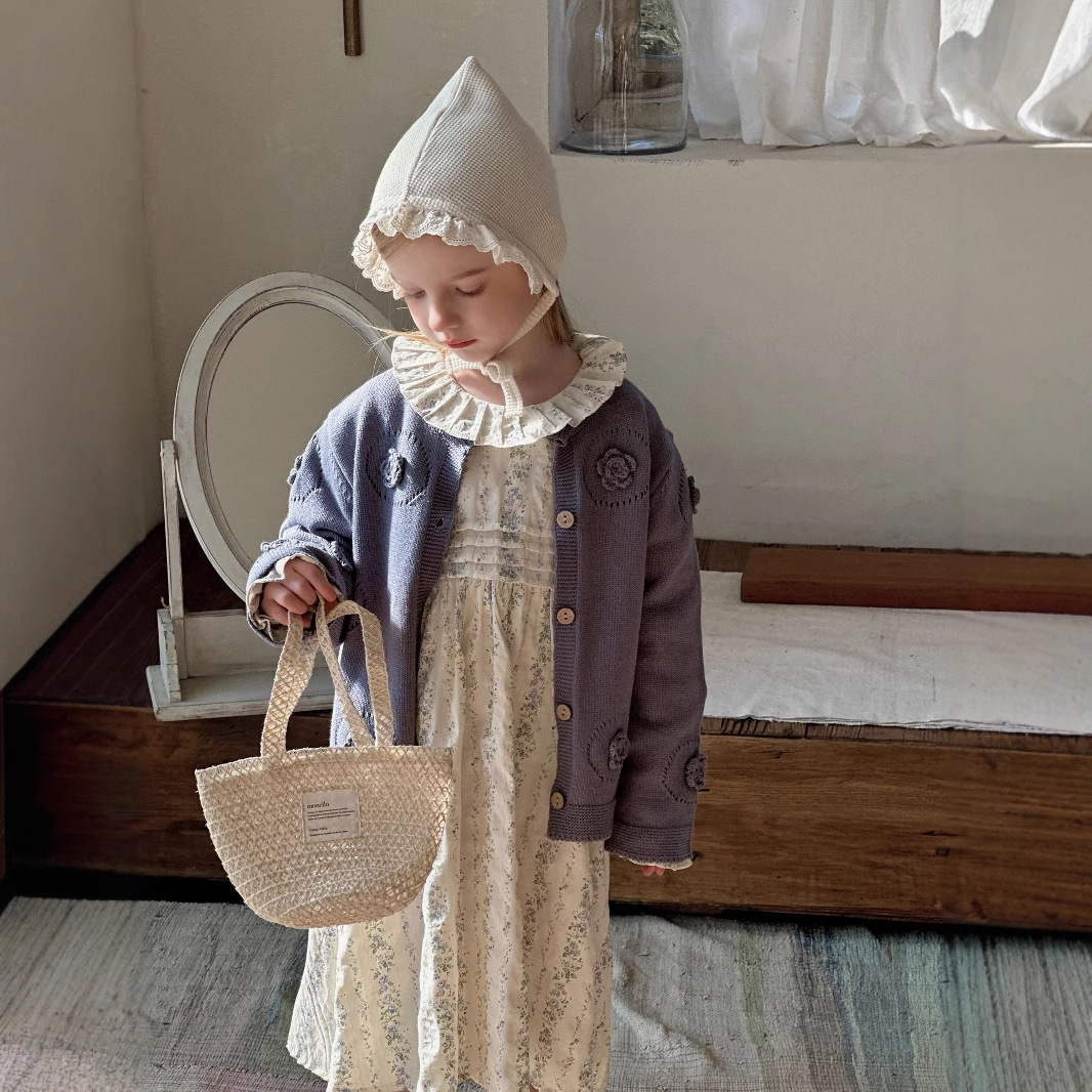 여자 니트 카디건 2025 봄과 가을 새로운 한국어 스타일 어린이 복고풍 크로 셰 뜨개질 탑 아기 중공 스웨터 재킷