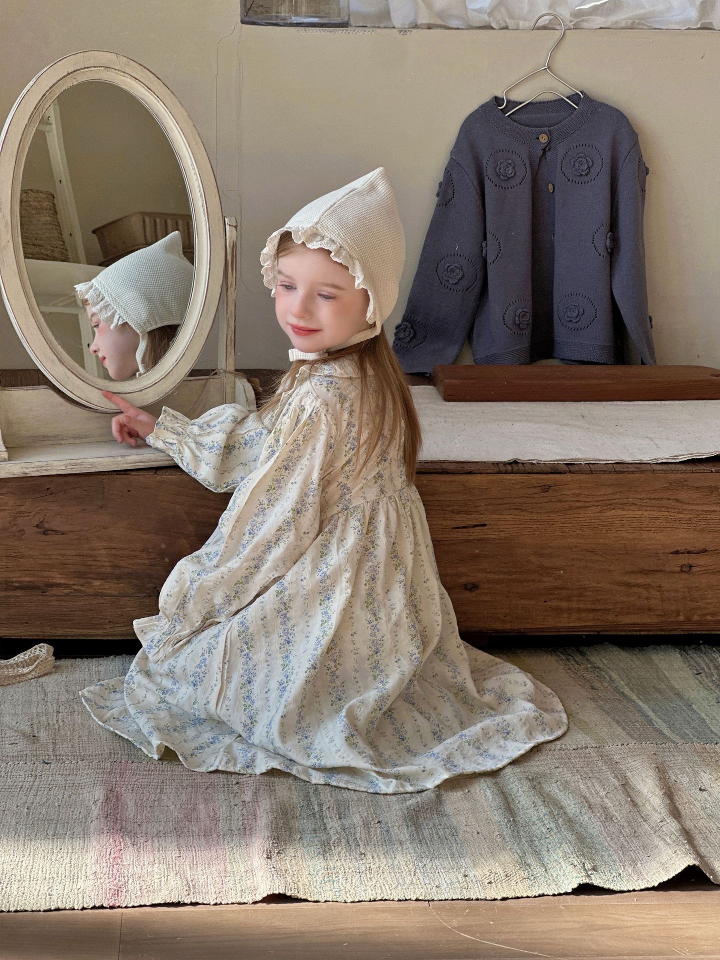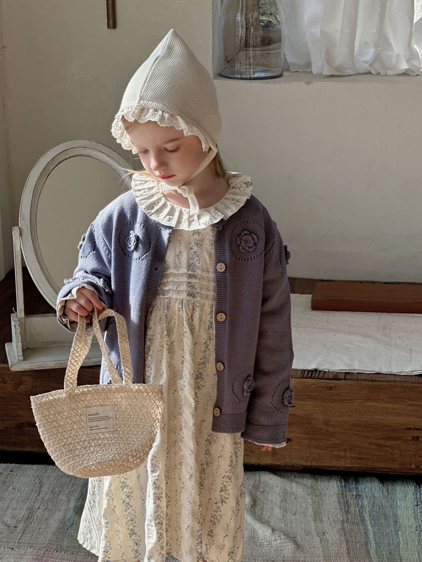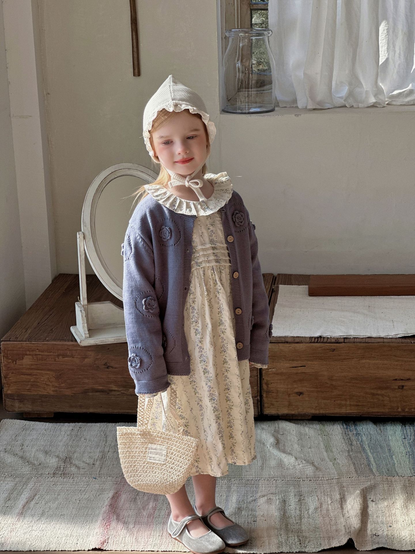 여자 니트 카디건 2025 봄과 가을 새로운 한국어 스타일 어린이 복고풍 크로 셰 뜨개질 탑 아기 중공 스웨터 재킷스토어 가기