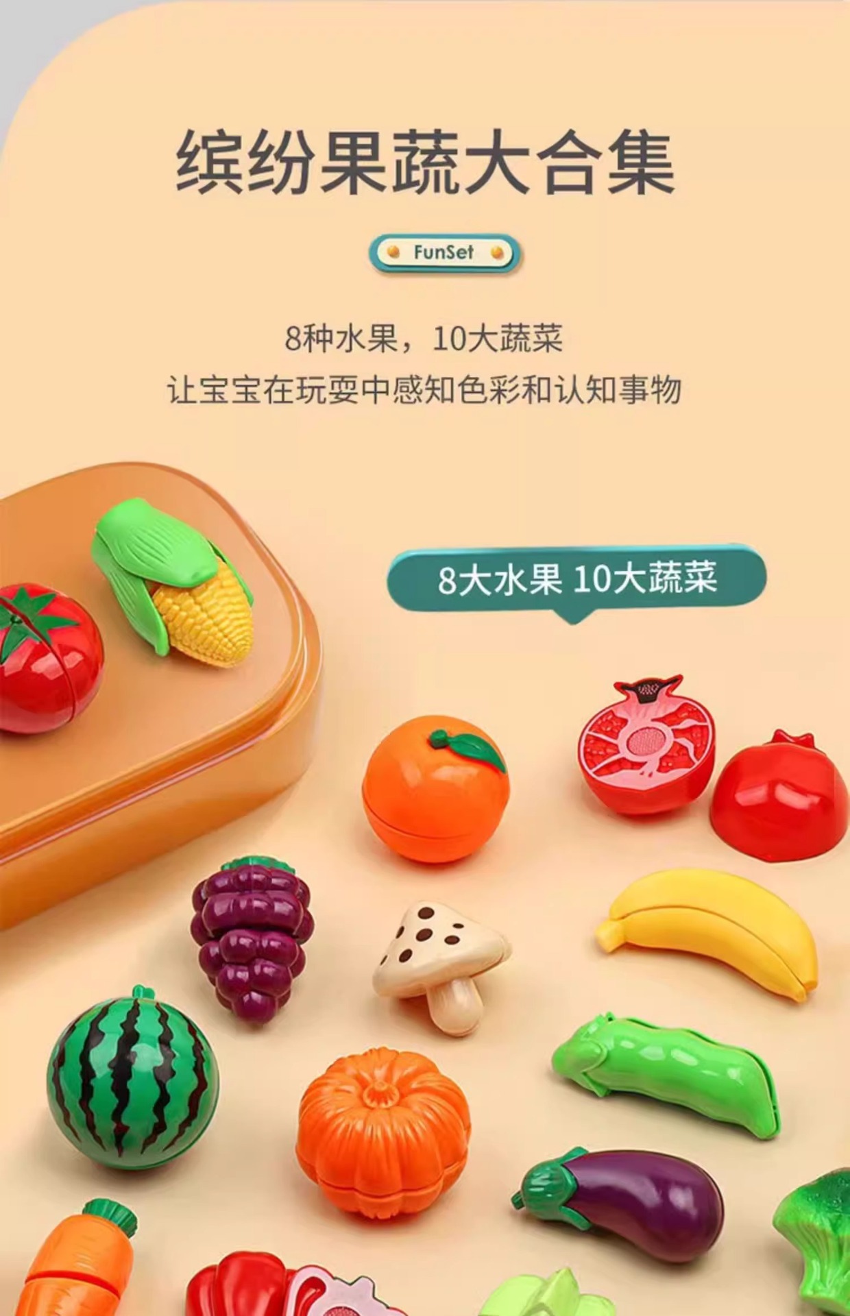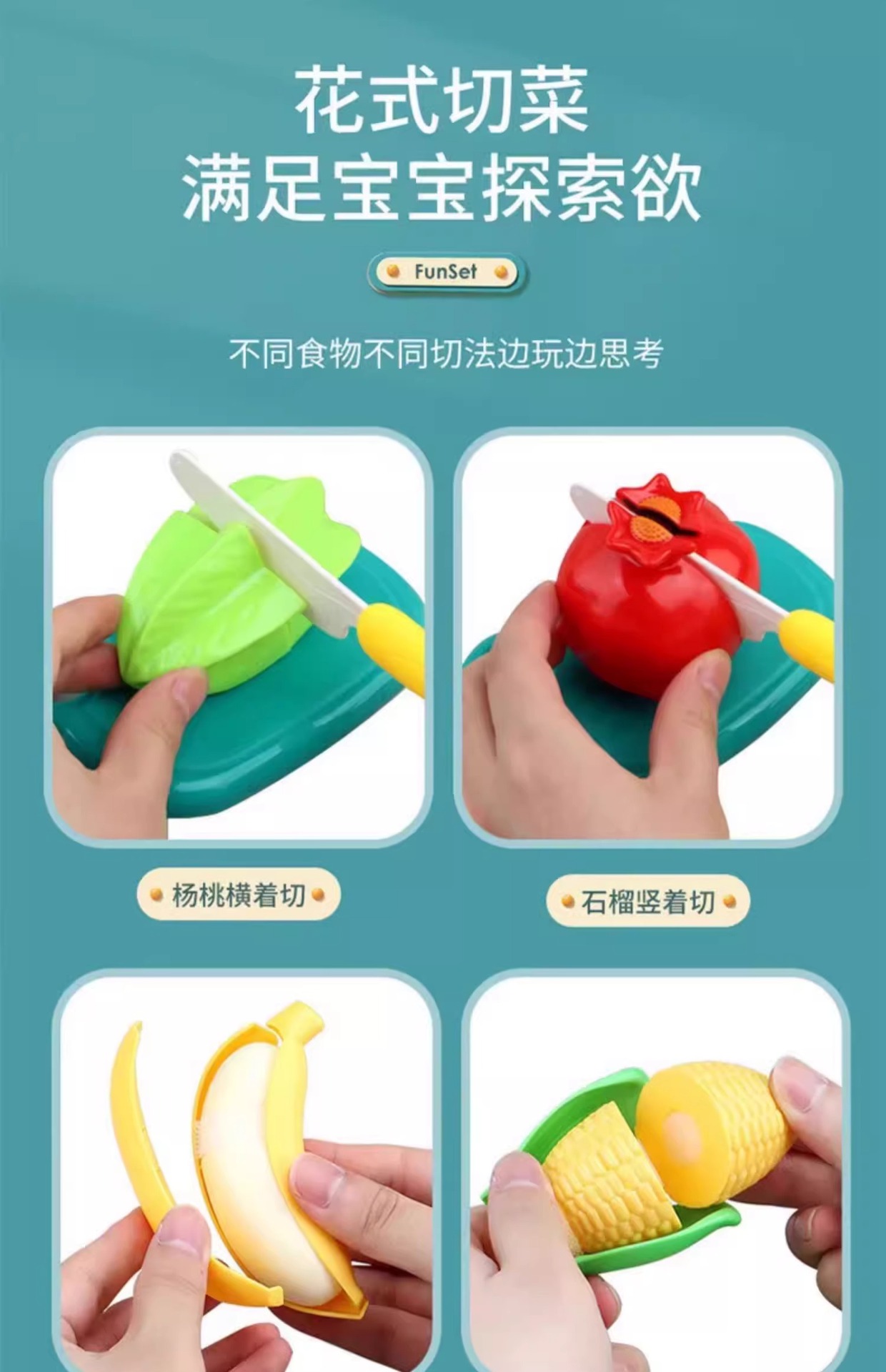 어린이 과일 자르기 장난감, 껍질을 벗길 수 있는 1~3세 유아용 장난감, 아기들이 씹을 수 있는 모조 두리안 야채 장난감스토어 가기