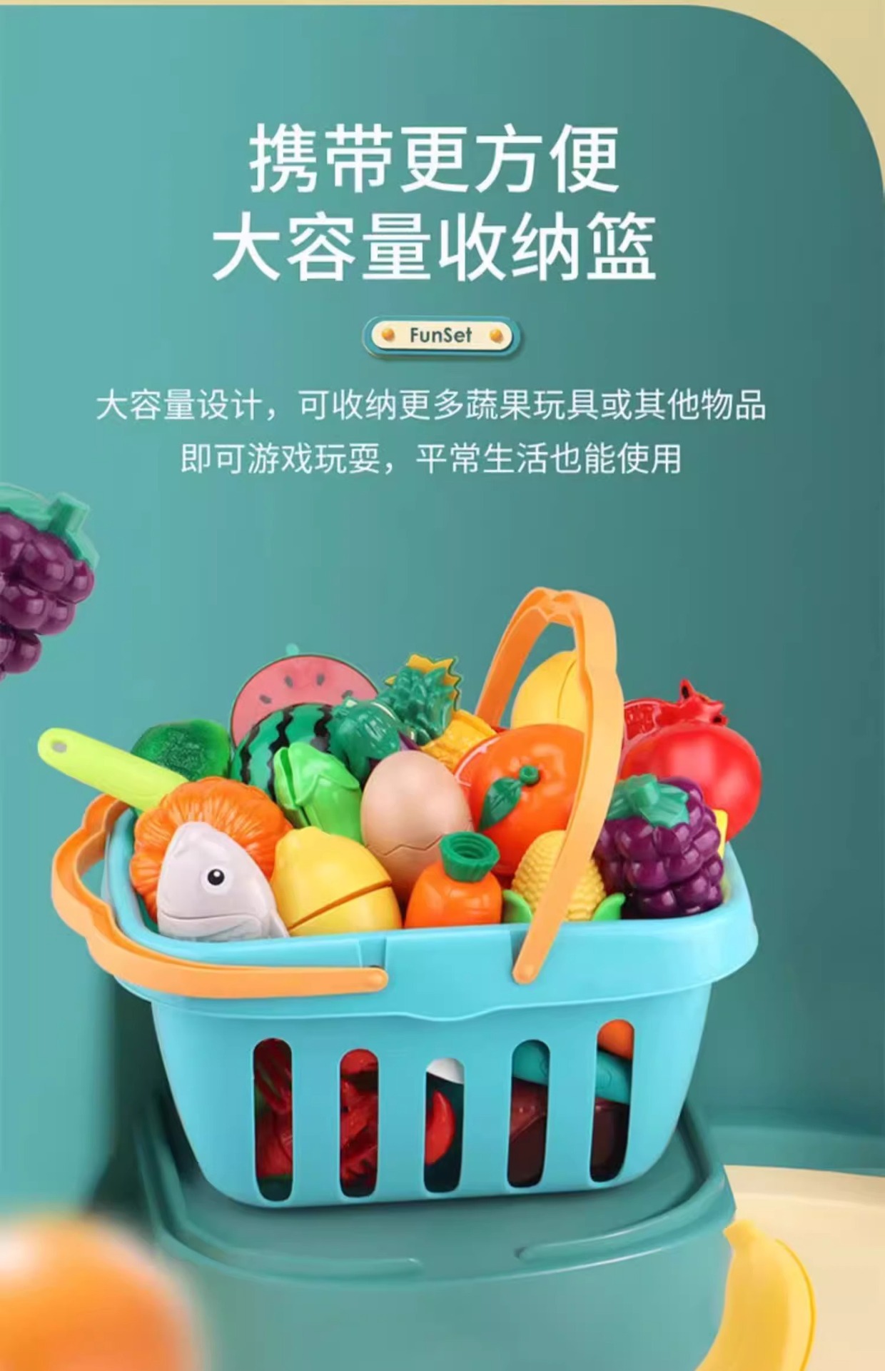 • [26종 세트] 피자, 과일 및 야채 커팅 펀 [완전 절단 가능 + 껍질 벗기기] 무료 초대형 바구니