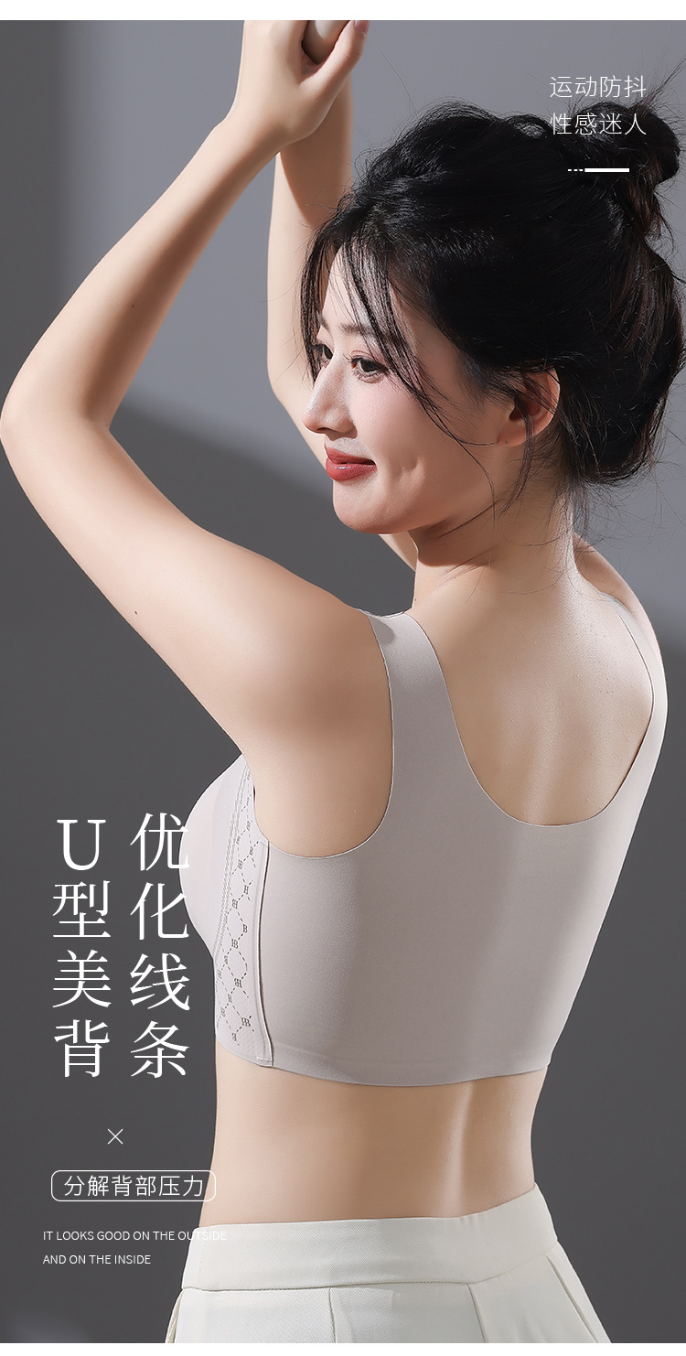 액체 원활한 소프트 지원 브래지어 스틸 링 고정 컵 얇은 편안한 리프트 스포츠 백 속옷