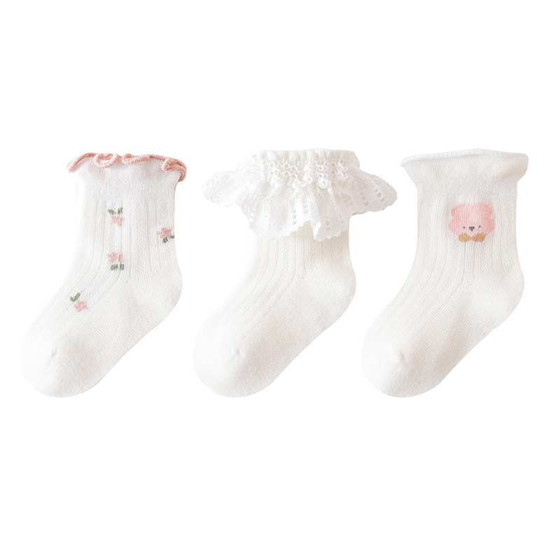 25 아기 양말 봄과 여름 얇은 클래스 A 메쉬 양말 아기 면 양말 중간 튜브 소녀 공주 레이스 양말 나비