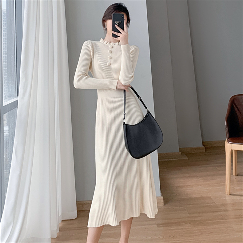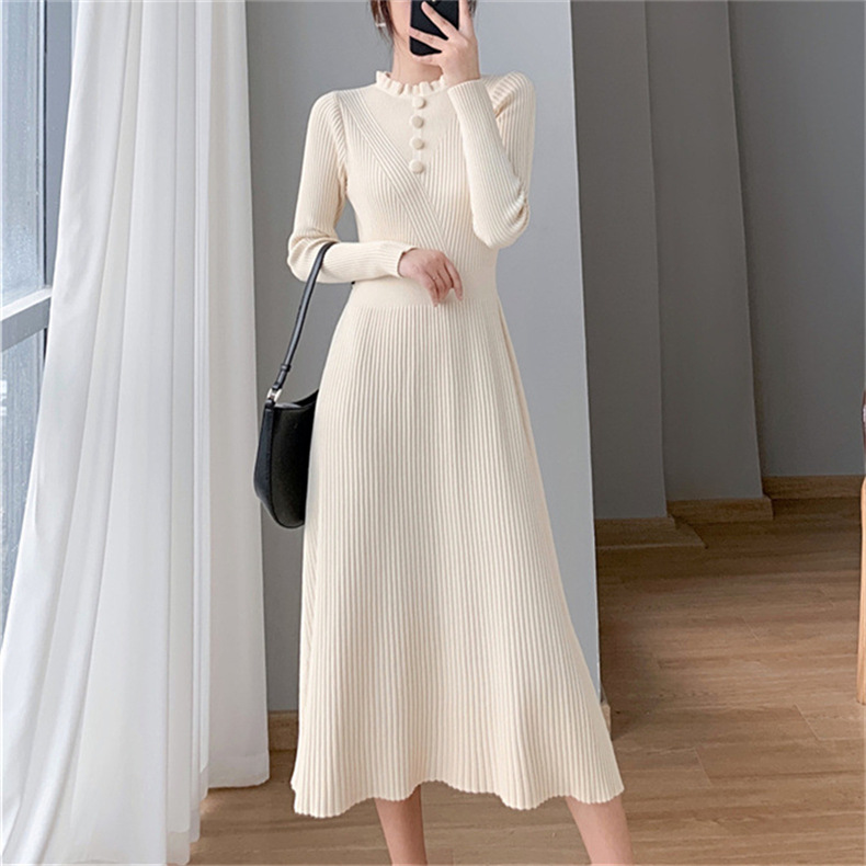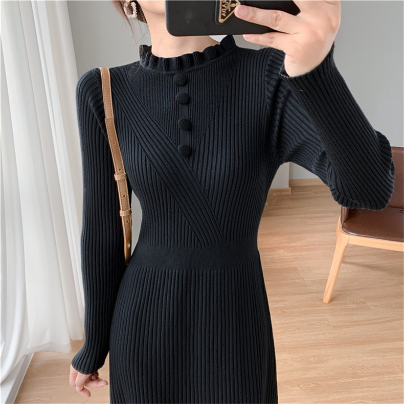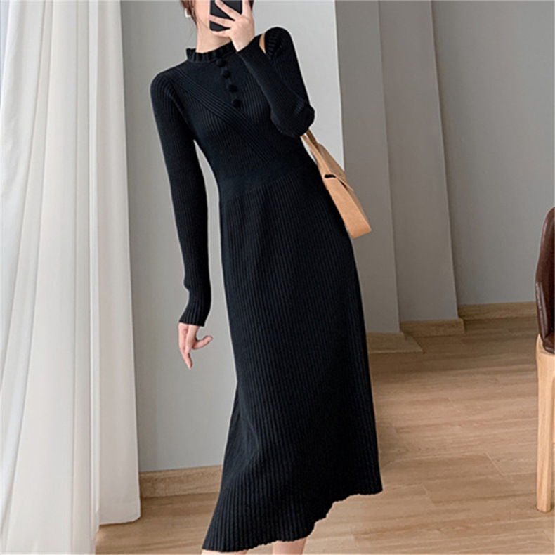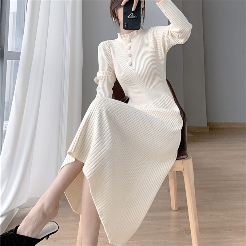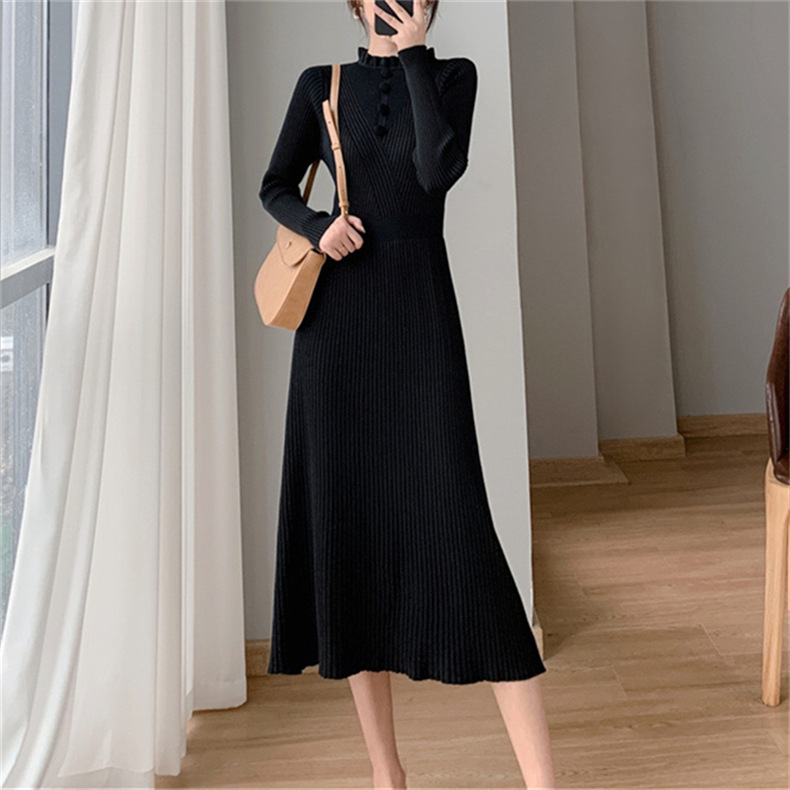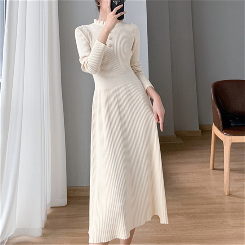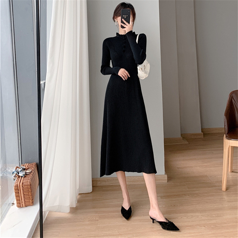 프랑스 최고급 agaric 칼라 오버 무릎 니트 니트 원피스 가을과 겨울 새로운 슬리밍 내부 니트 베이스 스커트 여성의 트렌디스토어 가기