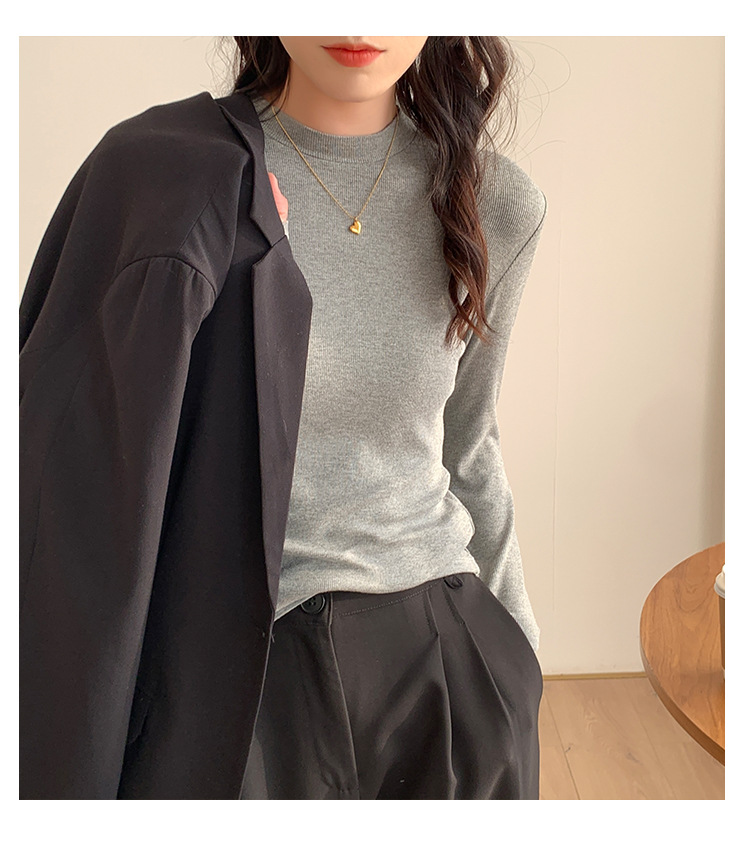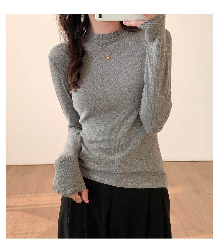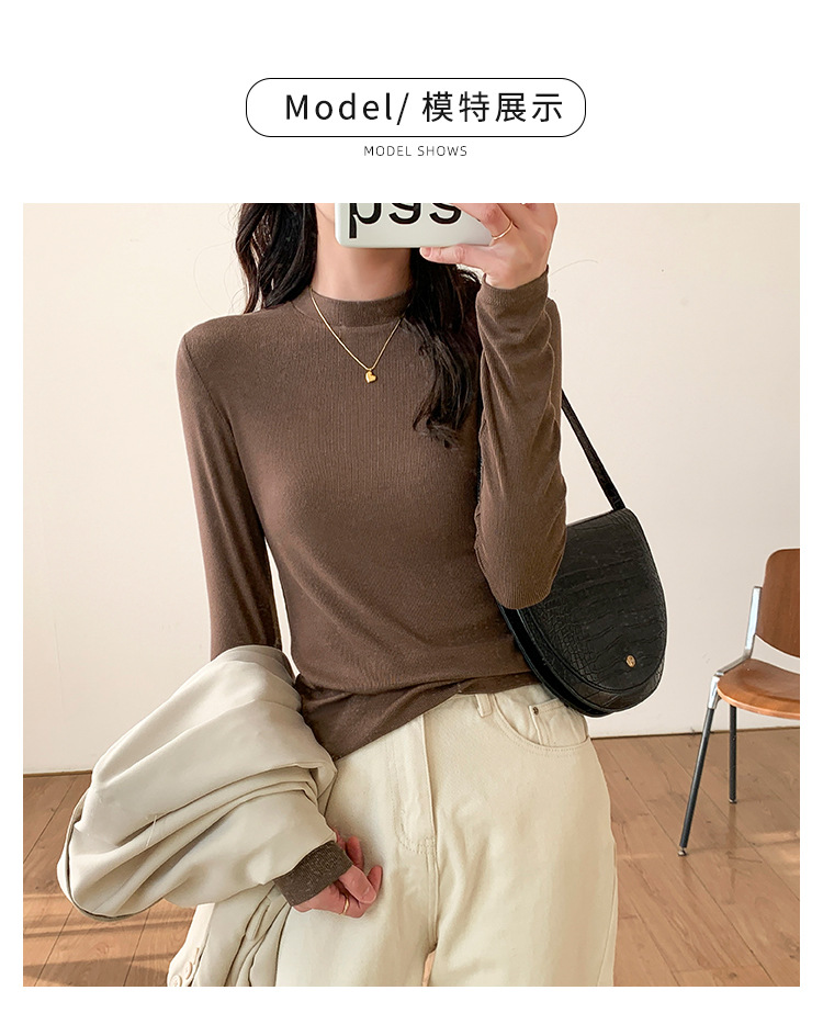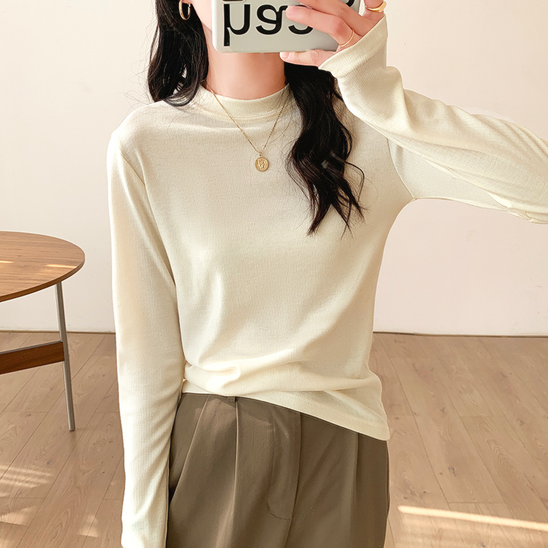 가을과 겨울 어깨 기질 스탠드 칼라 슬림 내부 따뜻한 긴 소매 티셔츠 여성베이스 셔츠스토어 가기