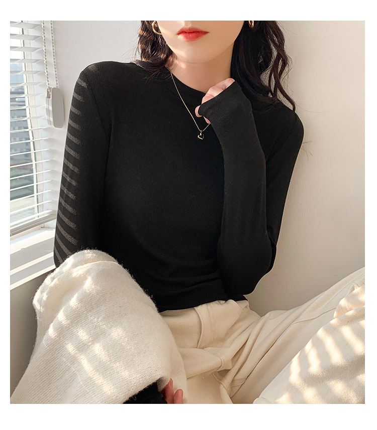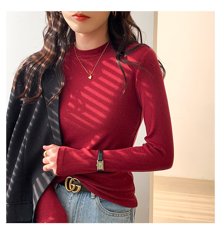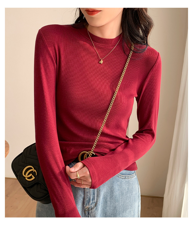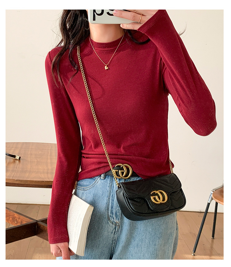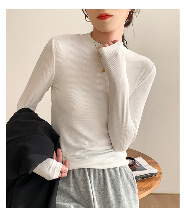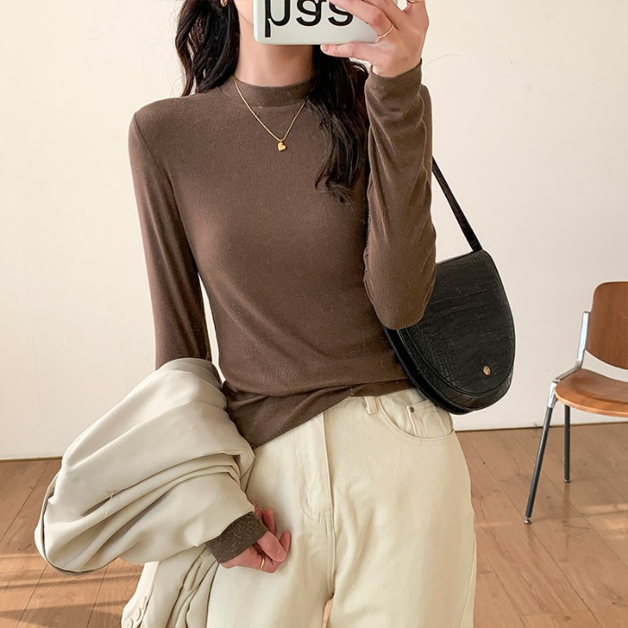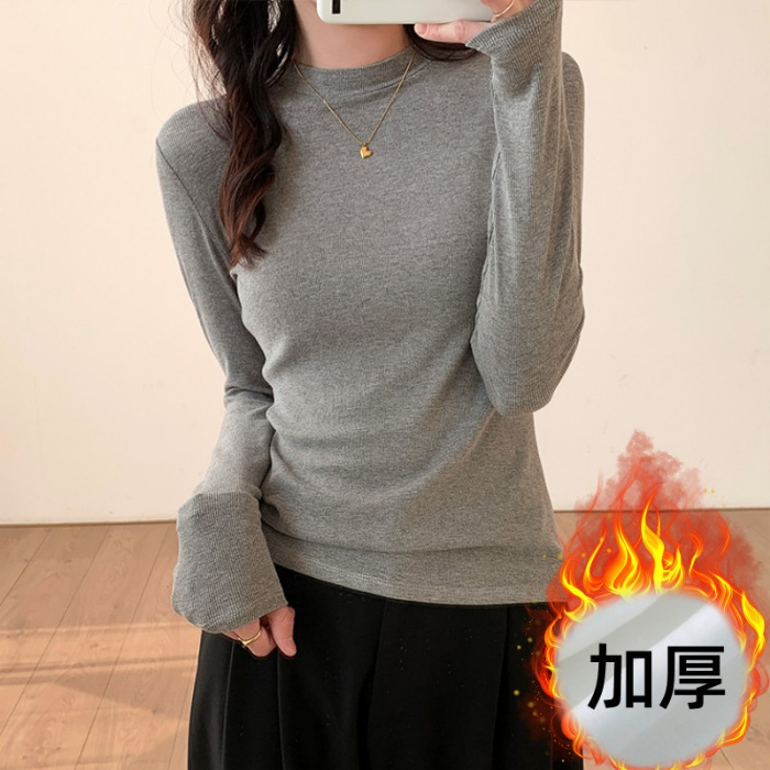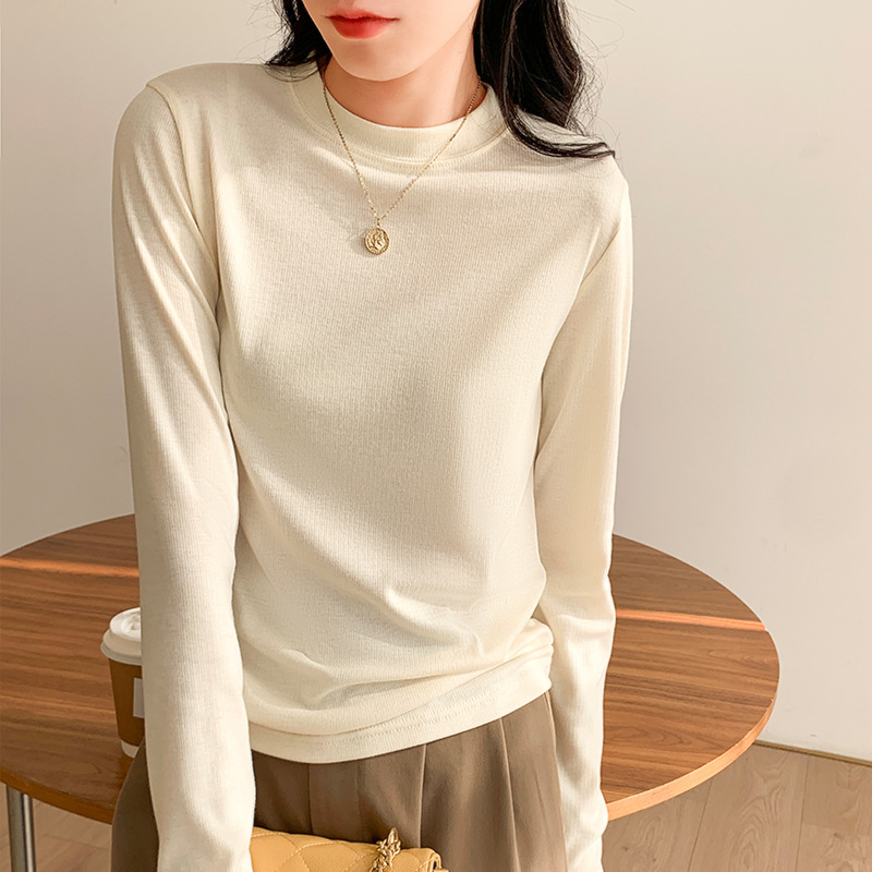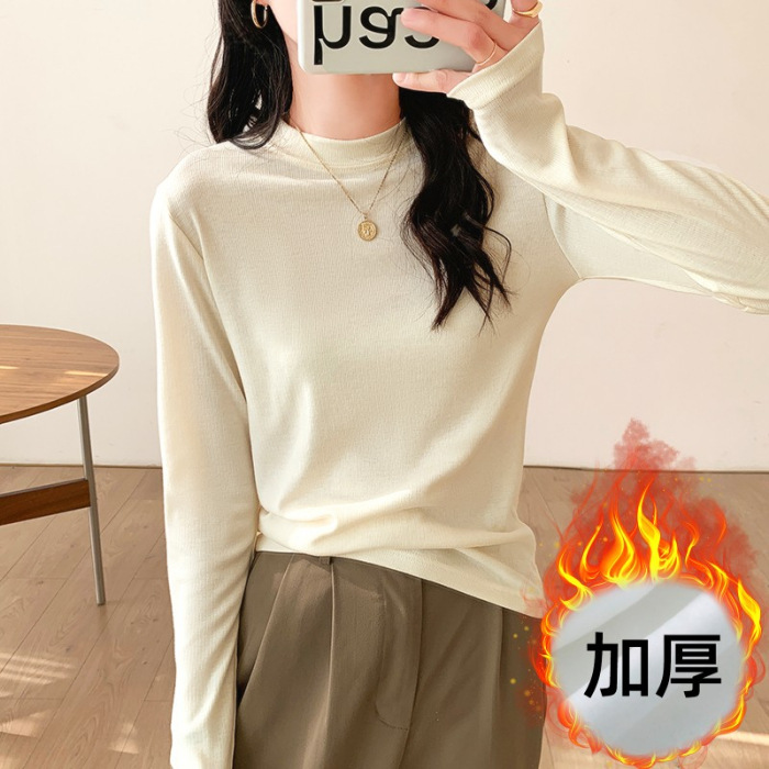 가을과 겨울 어깨 기질 스탠드 칼라 슬림 내부 따뜻한 긴 소매 티셔츠 여성베이스 셔츠