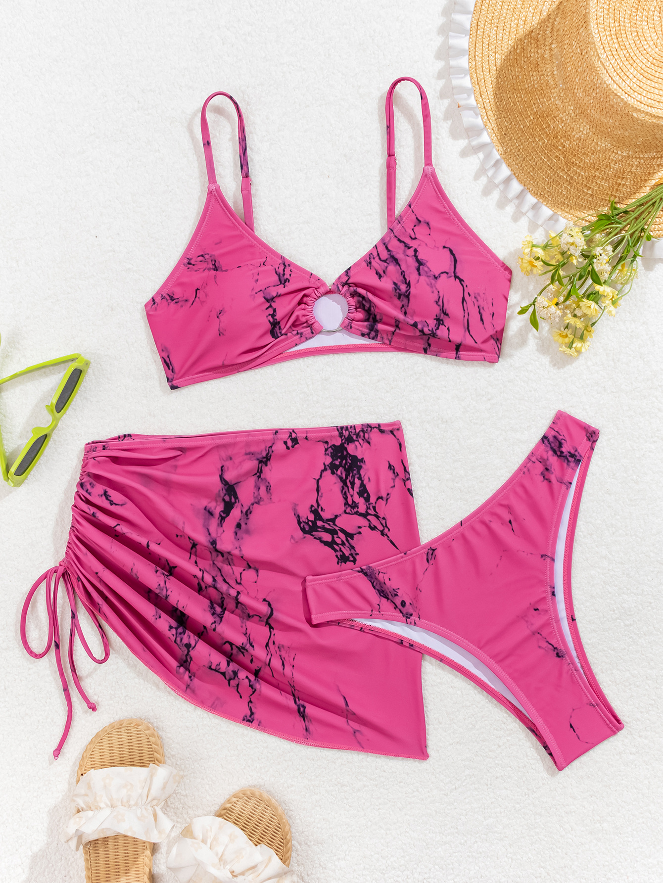 유럽과 미국의 새로운 홀리데이 스타일 비치 온천 섹시한 비키니 드로우 스트링 스커트 슬림핏 슬리밍 3 피스 여성용 수영복