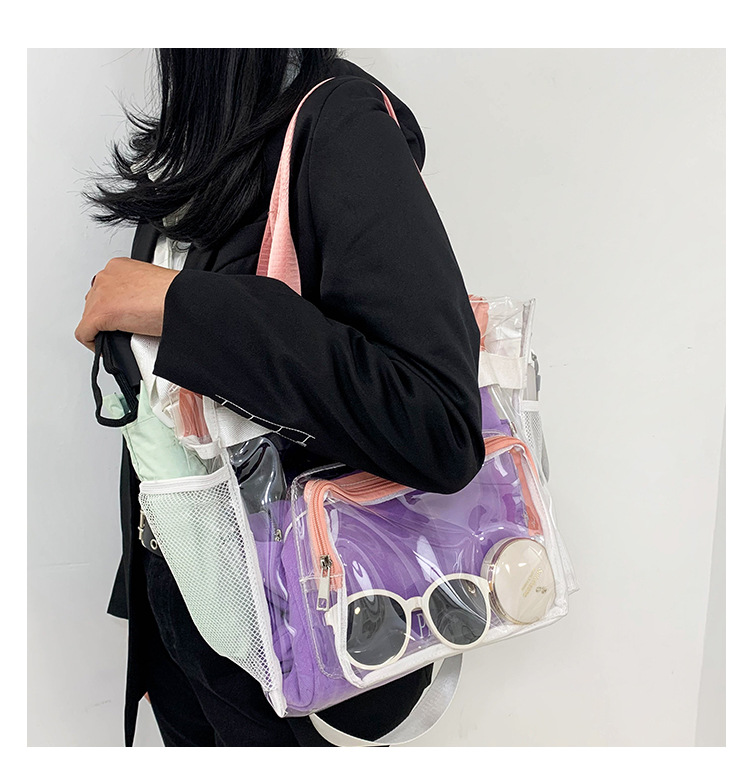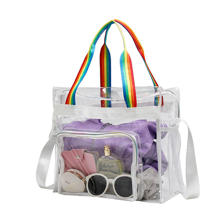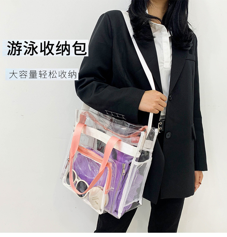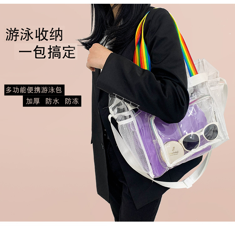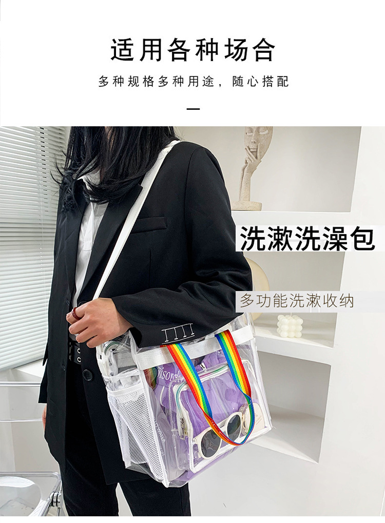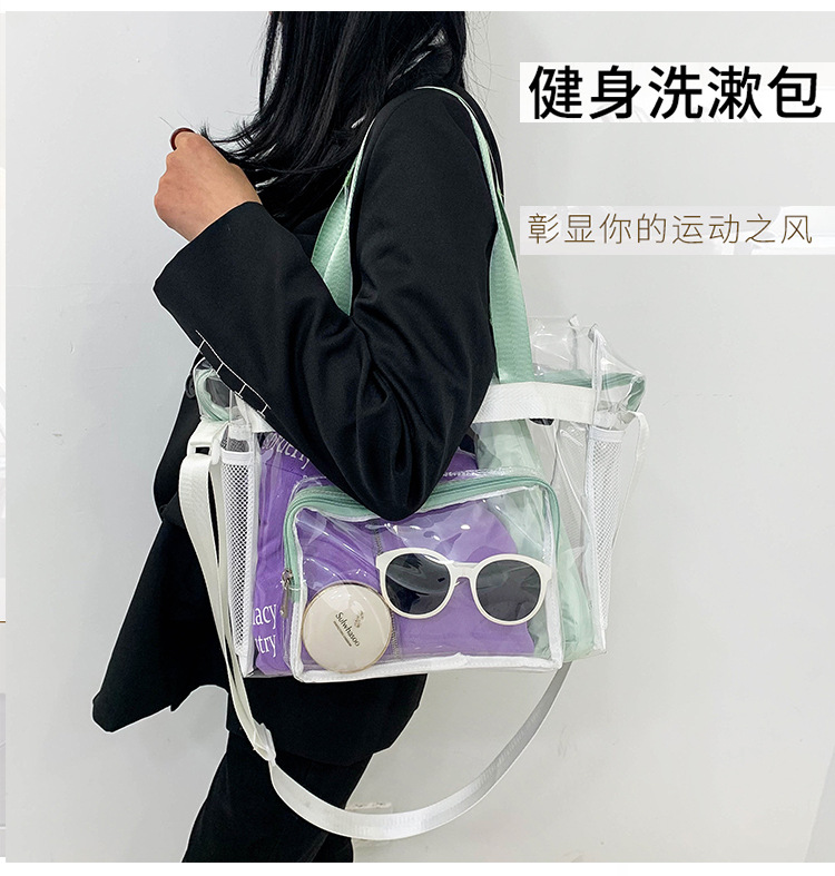 국경 패션 대용량 방수 피트니스 워시 백 여성 어깨 가방 PVC 투명 크로스 바디 백팩 화장품 가방스토어 가기