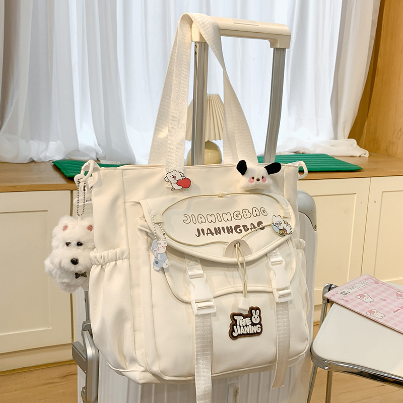 • 배지 3개가 있는 흰색 숄더백 1 블러쉬 강아지 배지 1 목걸이 플러시 강아지 펜던트