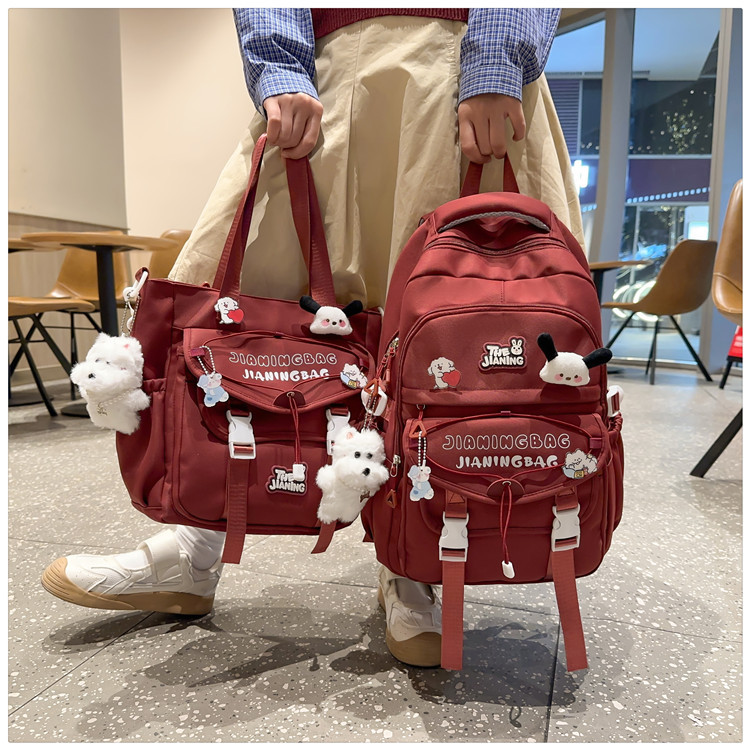 • 배지 3개가 있는 빨간색 배낭 1 블러셔 강아지 배지 1 목걸이 봉제 강아지 펜던트