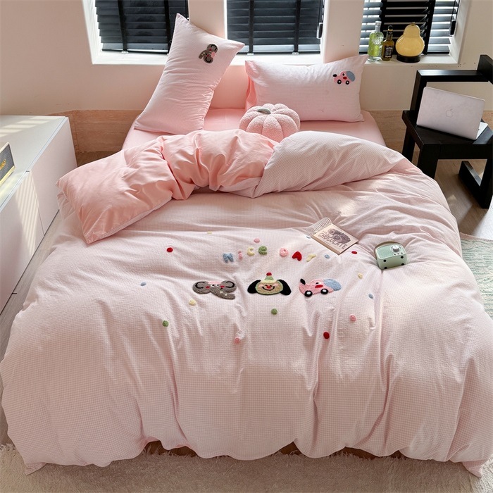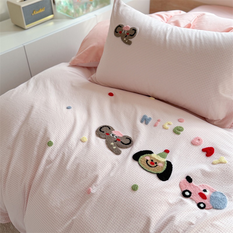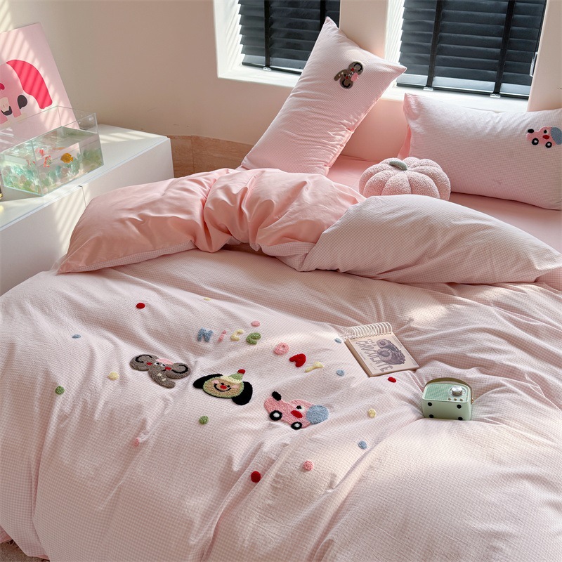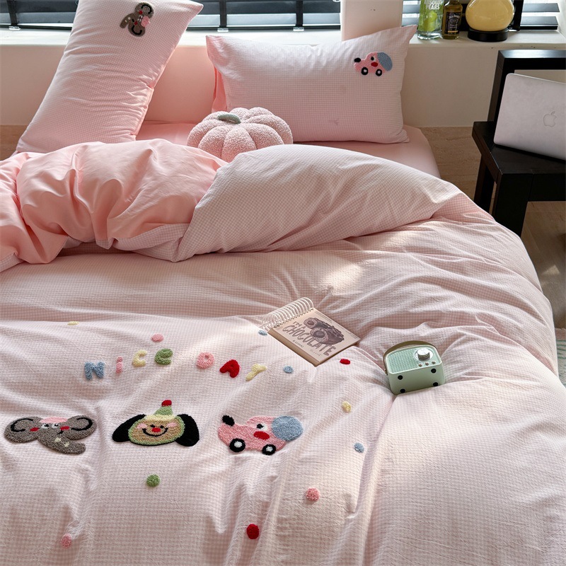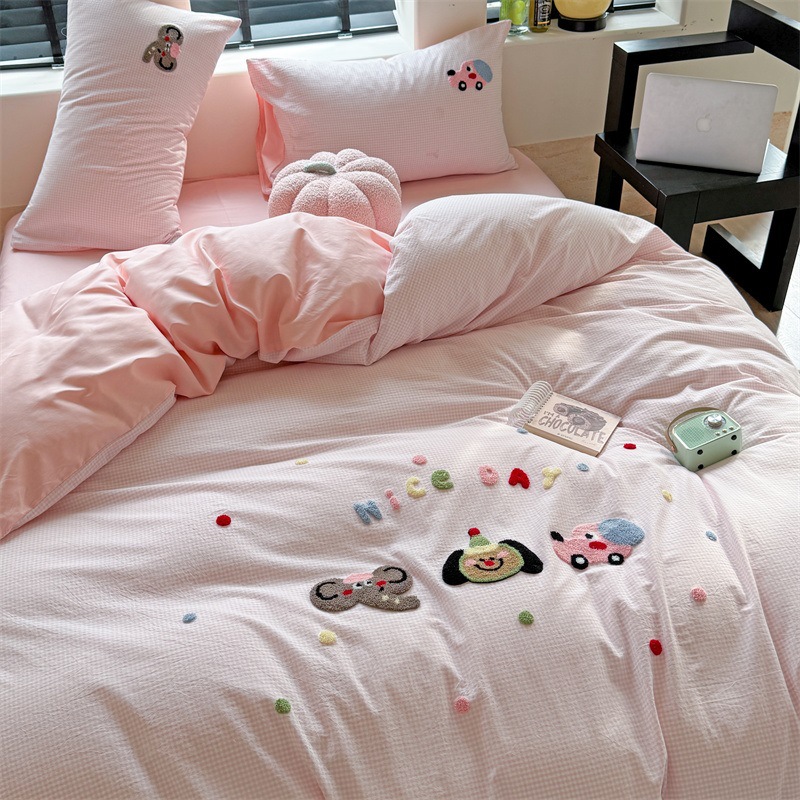 2025 새로운 면 세척 코튼 타월 자수 코튼 퀼트 커버 침대 시트 침실 4 종 세트