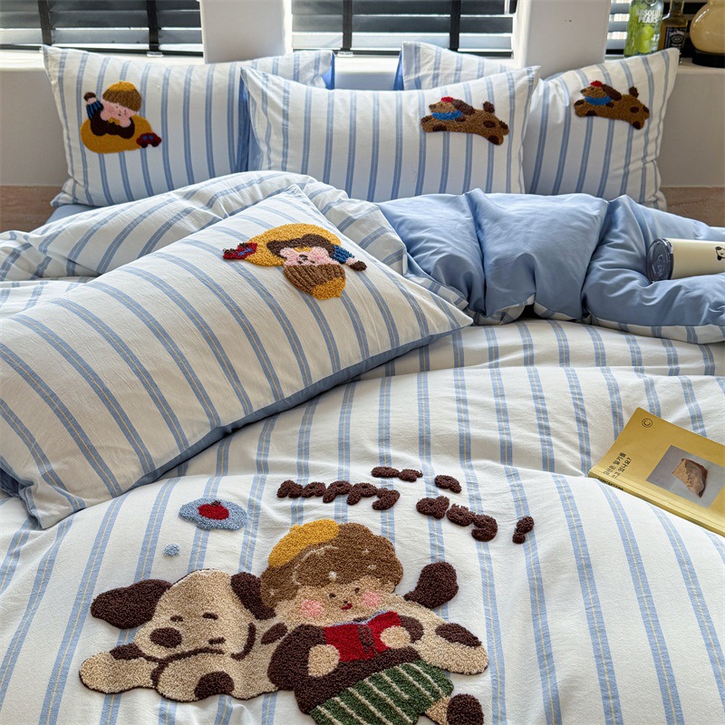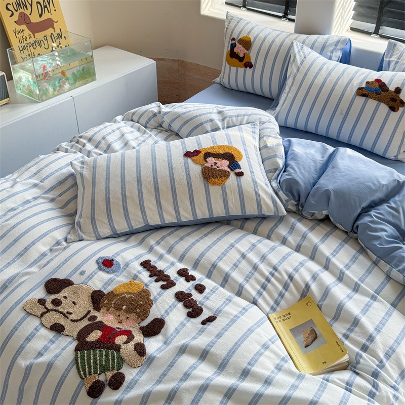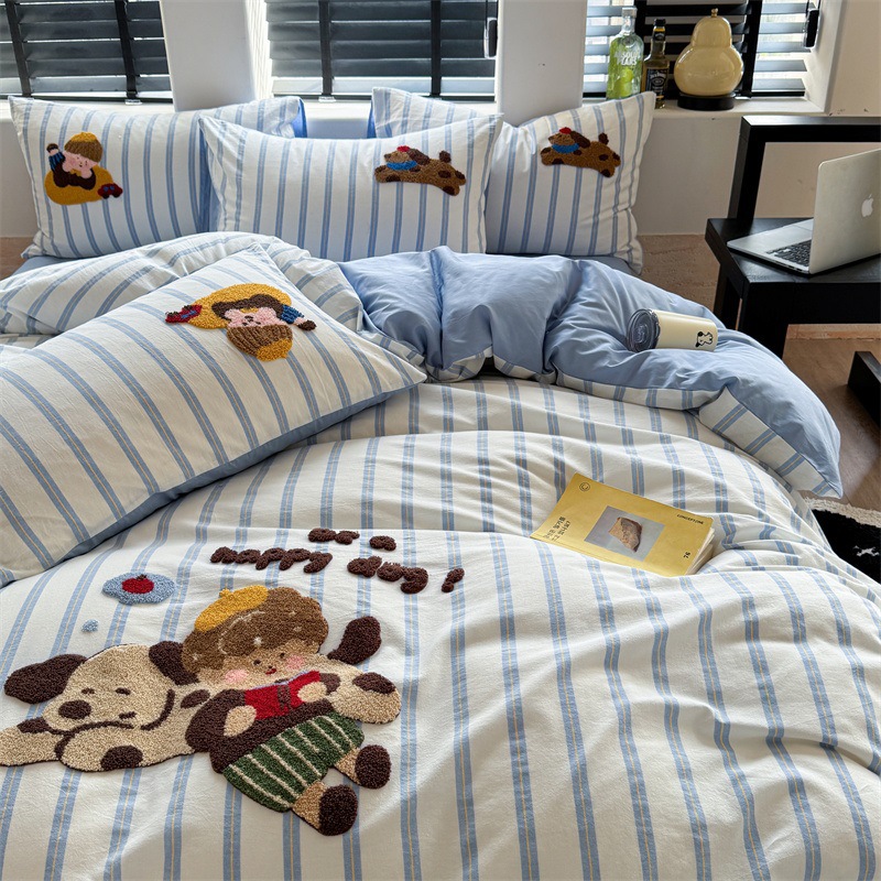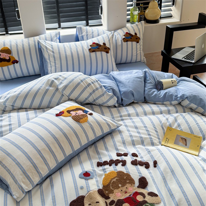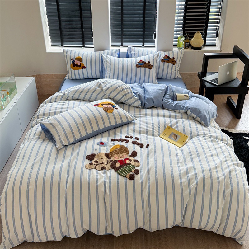 2025 새로운 면 세척 코튼 타월 자수 코튼 퀼트 커버 침대 시트 침실 4 종 세트스토어 가기