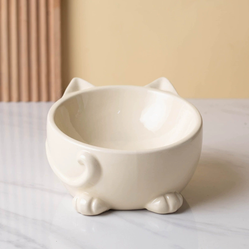 새끼 고양이 세라믹 귀여운 창조적 인 사향 입 중소 개 높은 발 애완 동물 그릇 음식 마시는 물 목 보호 고양이 그릇 용품스토어 가기
