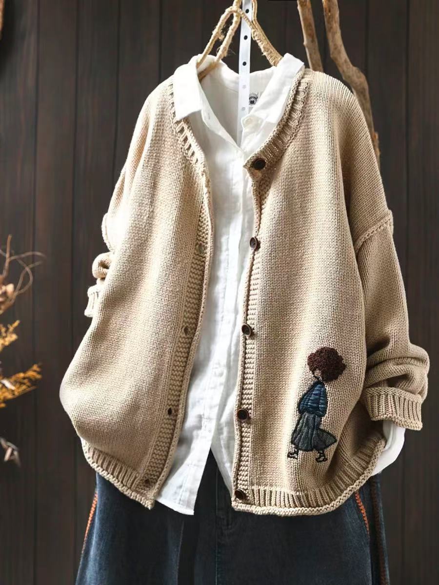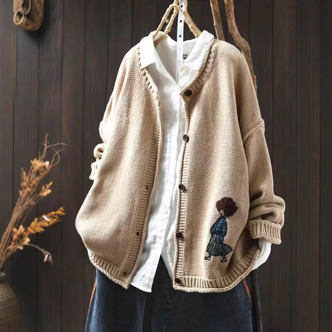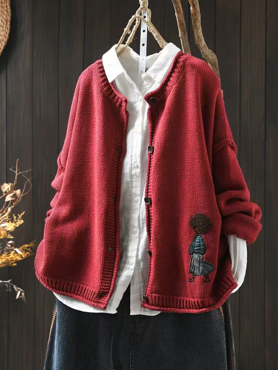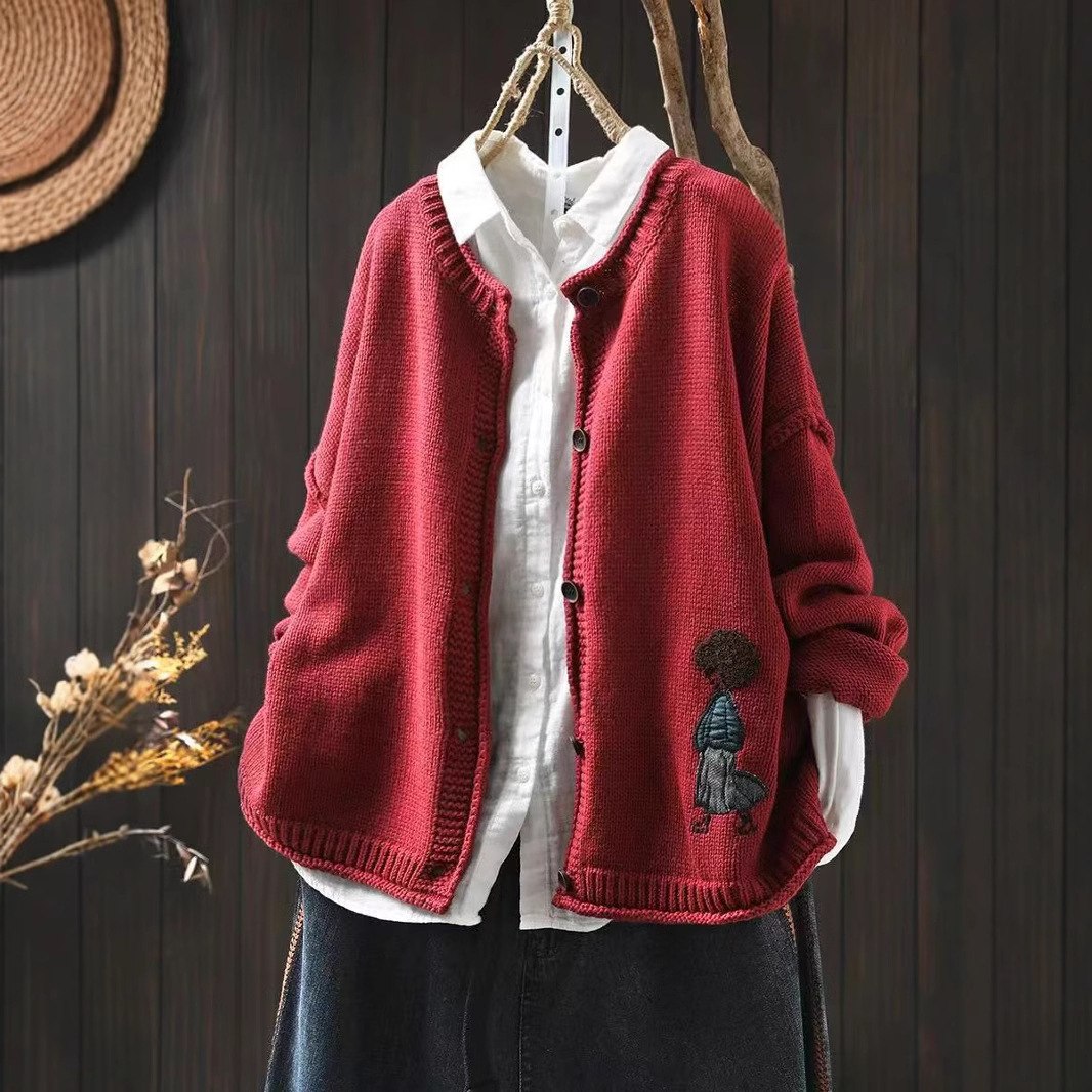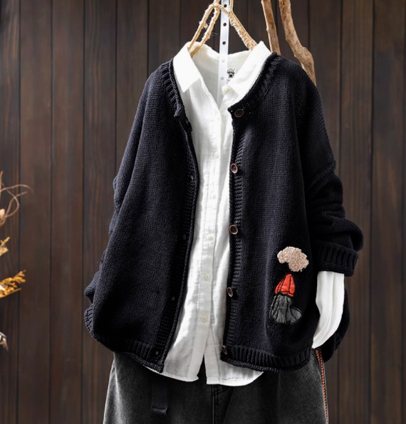 새로운 도착 스티커 면 니트 카디건 느슨한 슬리밍 빈티지 캐주얼 코트