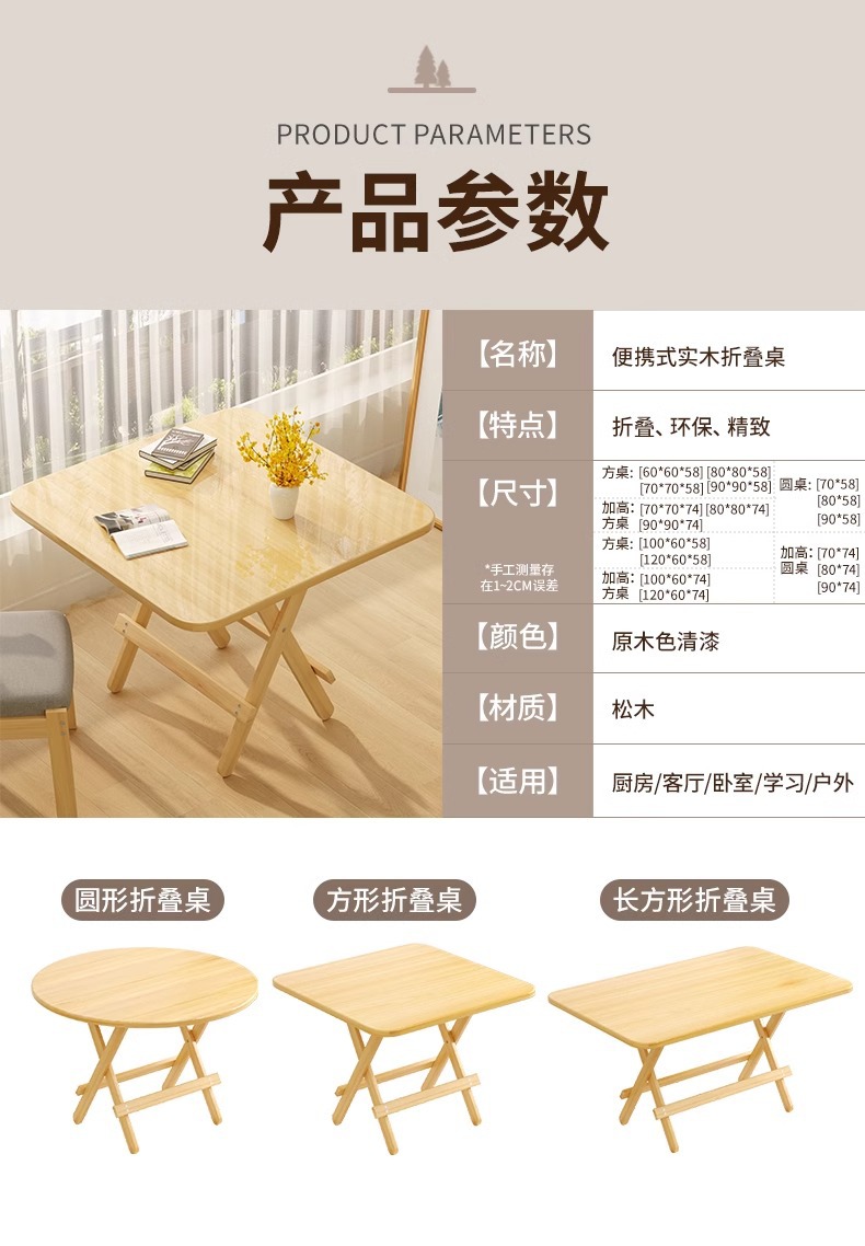 단단한 나무 접이식 식탁 가정용 작은 아파트 간단한 라운드 테이블 휴대용 야외 스톨 테이블 식탁 작은 정사각형 테이블스토어 가기