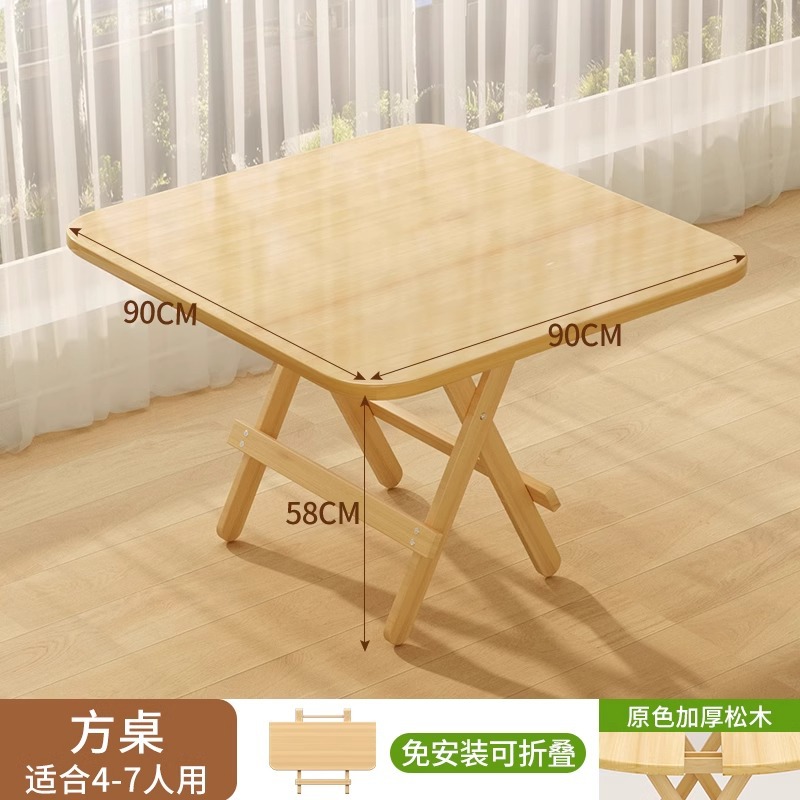 • 강화모델-사각테이블-90*90*74 [두꺼운 소나무, 설치불가, 접이식]