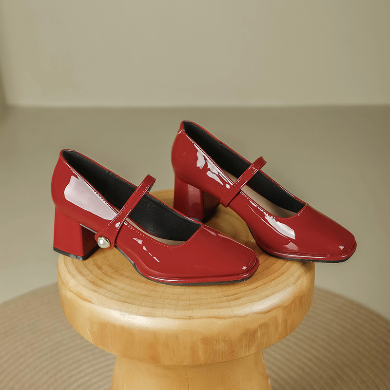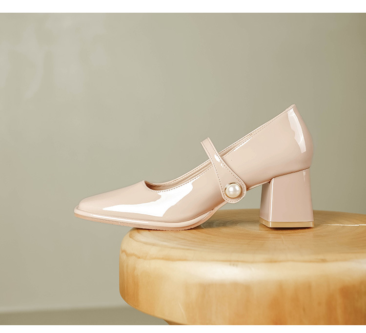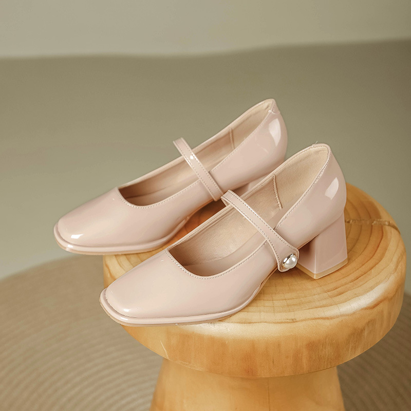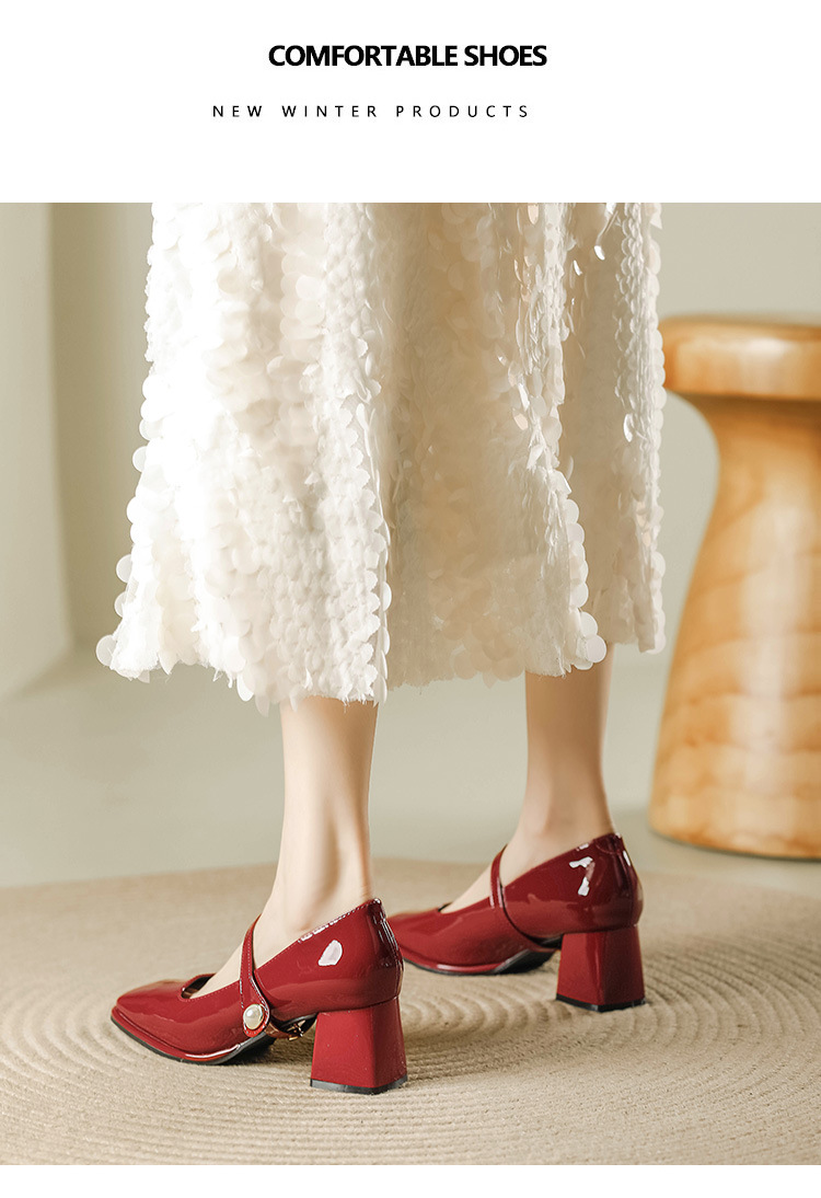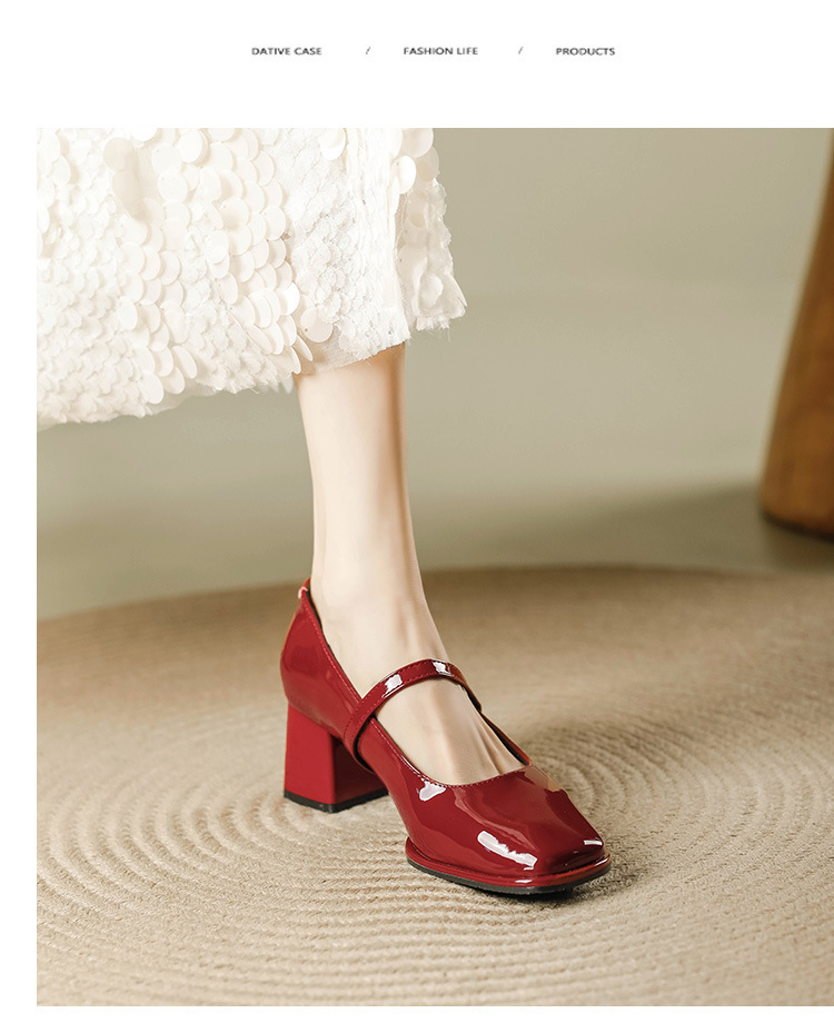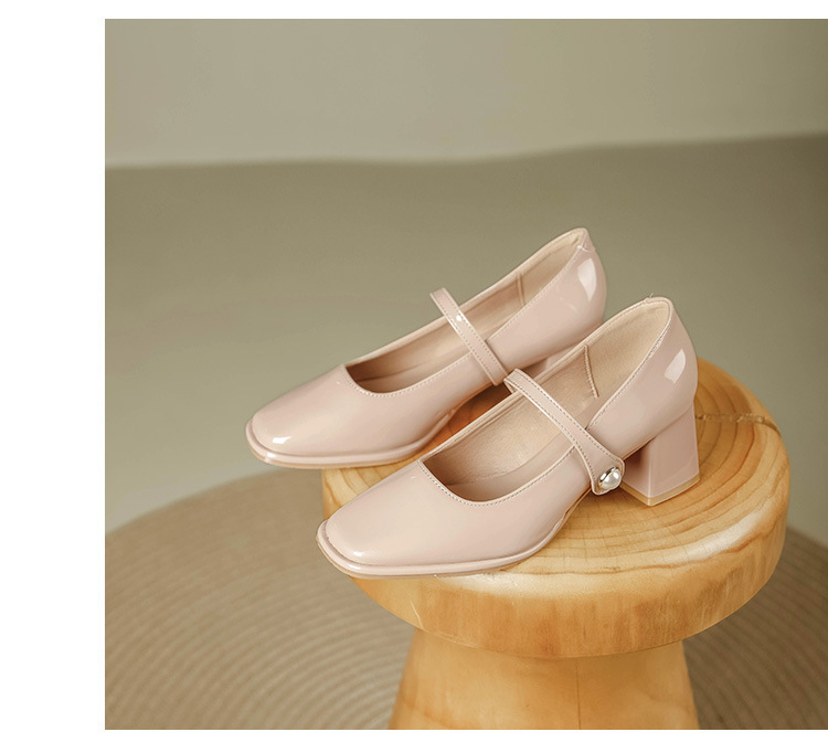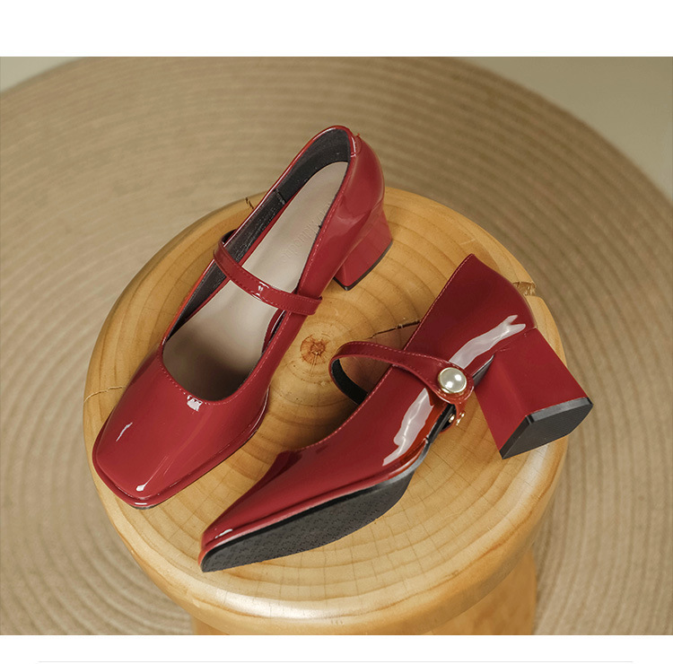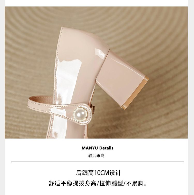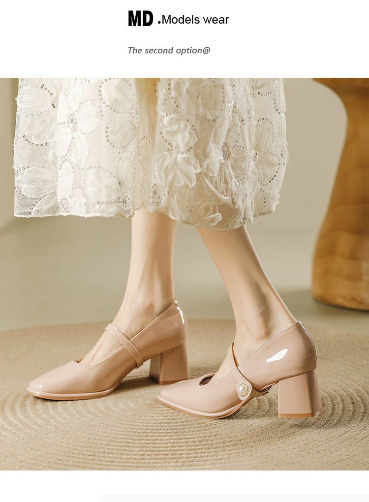 X501-Z62 특허 가죽 두꺼운 힐 2025 메리 제인이 피곤하지 않은 새로운 여성 올매치 하이힐 여성 신발스토어 가기