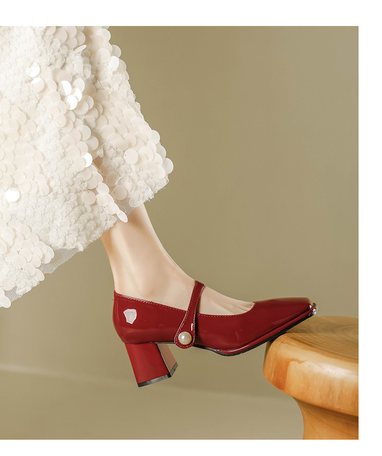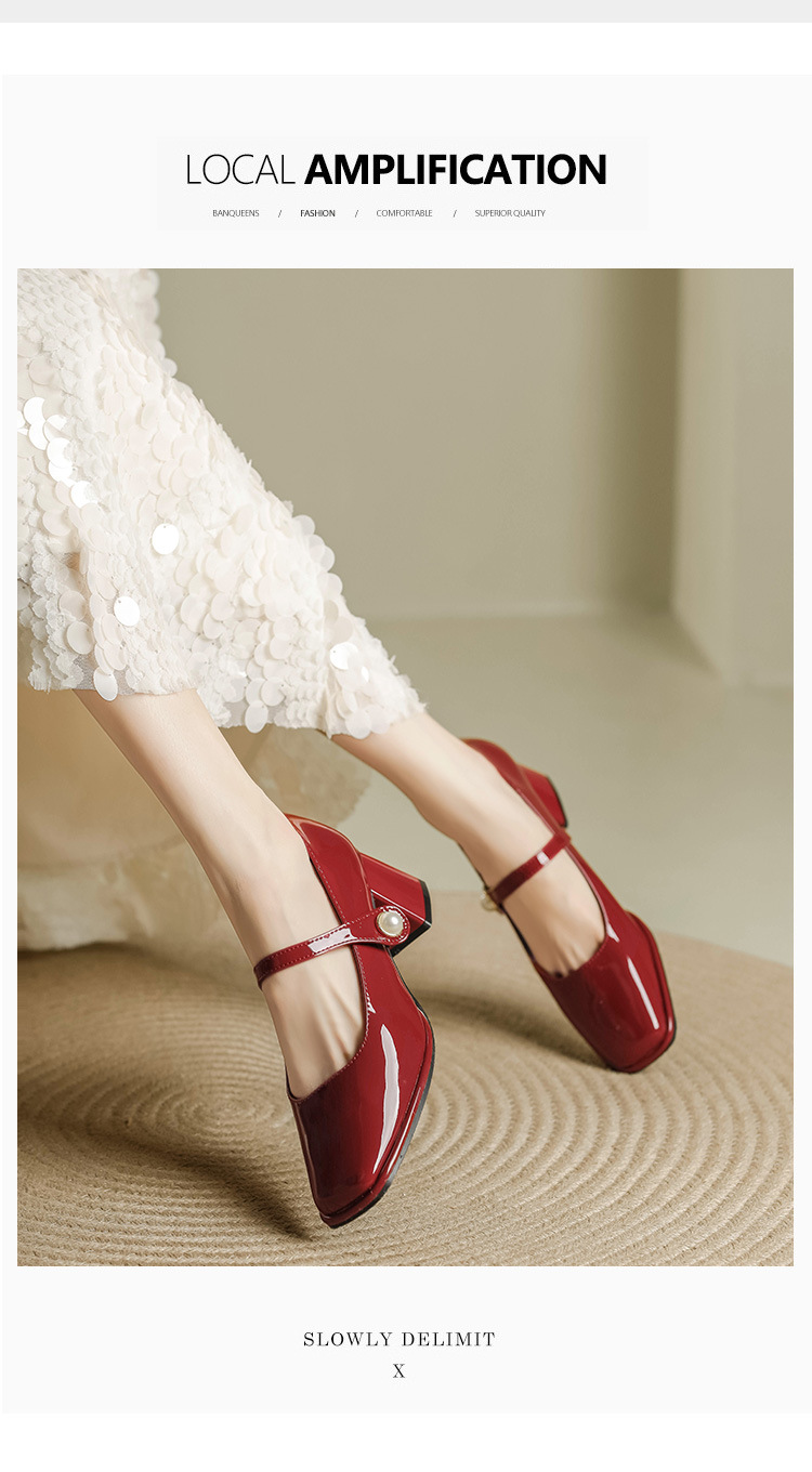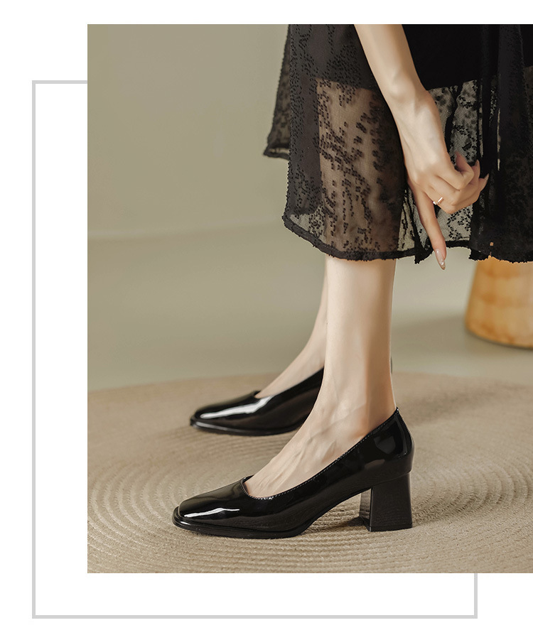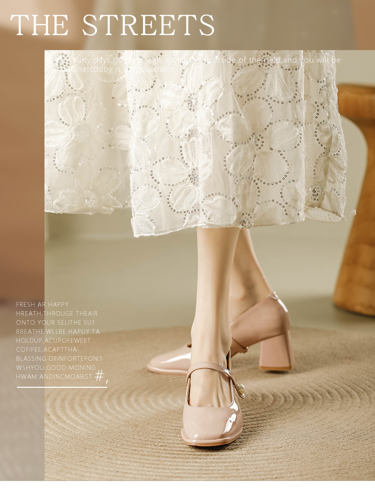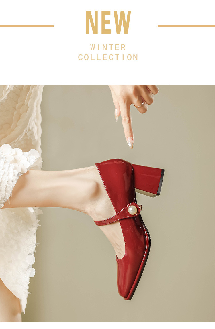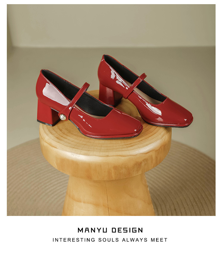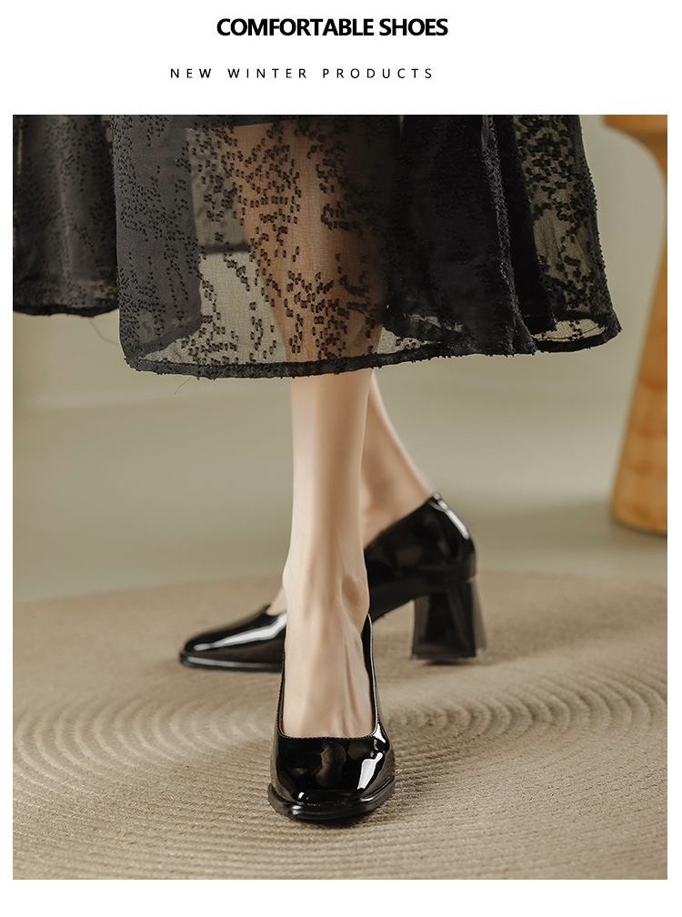 X501-Z62 특허 가죽 두꺼운 힐 2025 메리 제인이 피곤하지 않은 새로운 여성 올매치 하이힐 여성 신발스토어 가기
