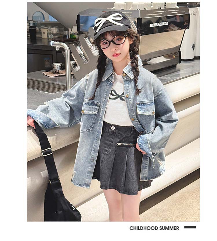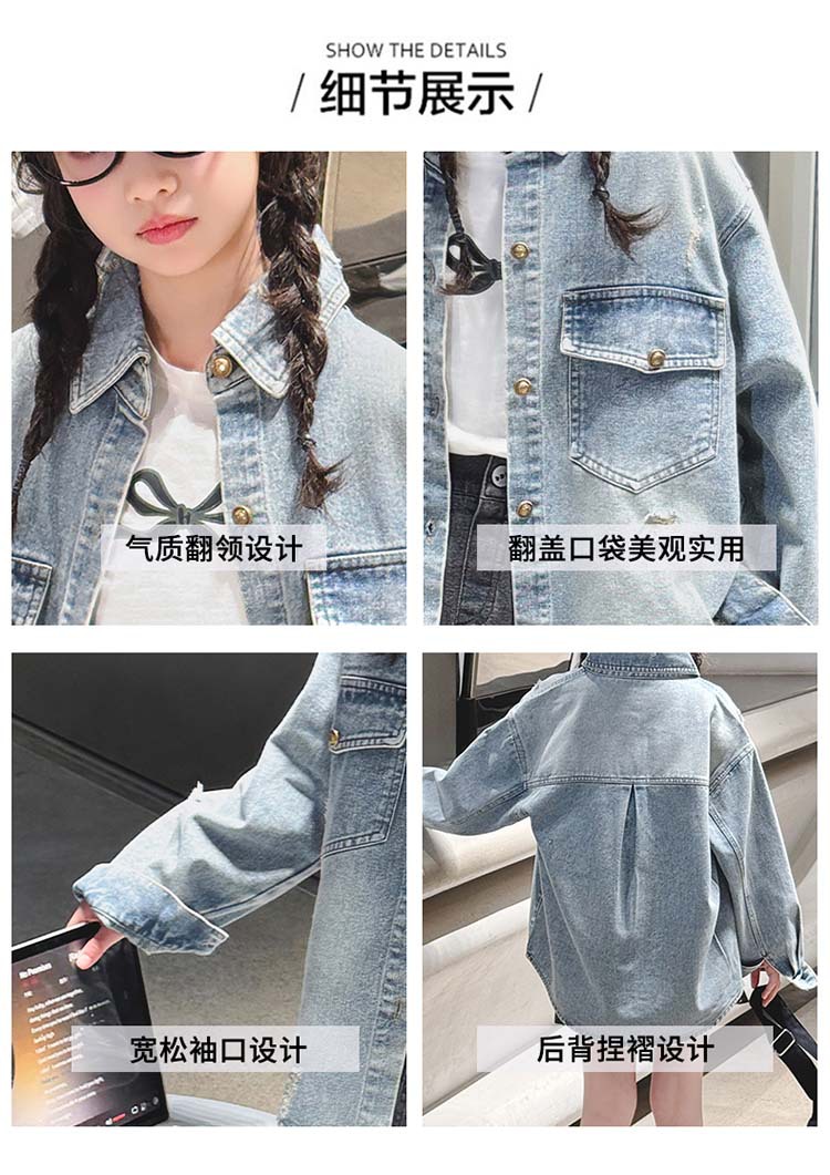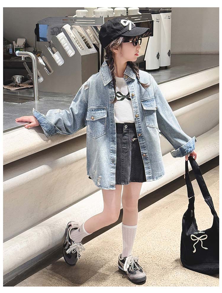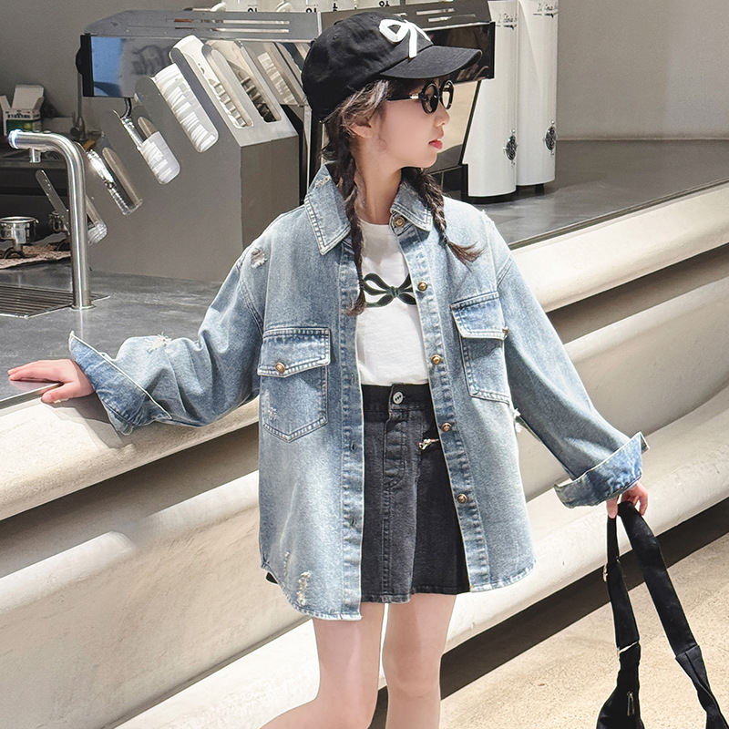 여자 봄 중공업 리핑 데님 셔츠 재킷 2025 새로운 어린이 서양식 캐주얼 스포츠 재킷 윈드브레이커