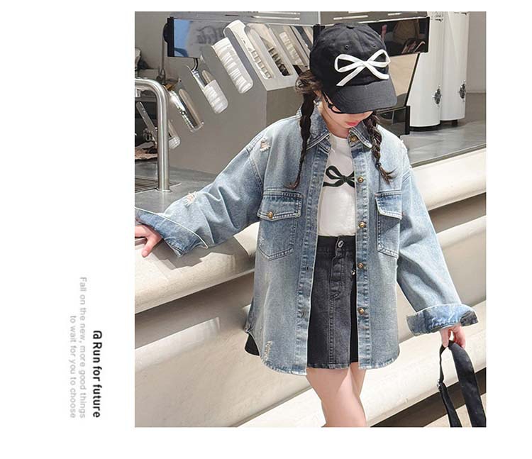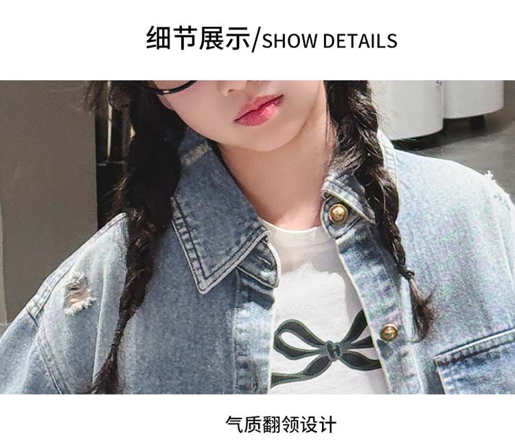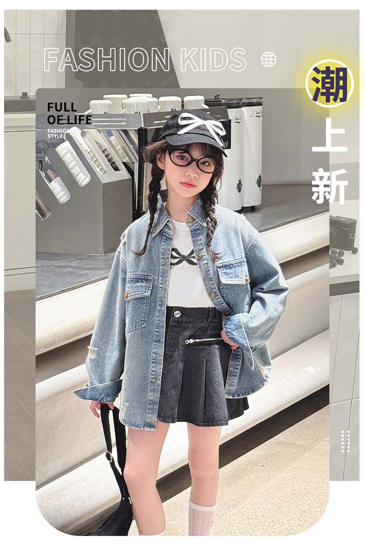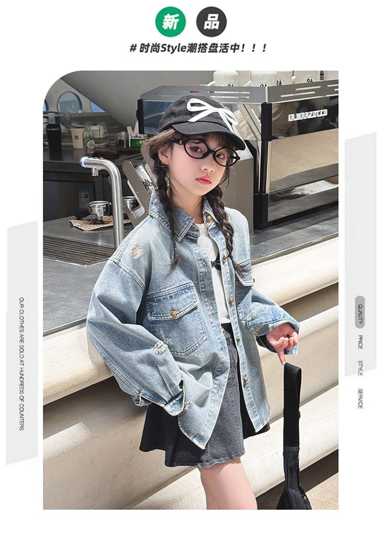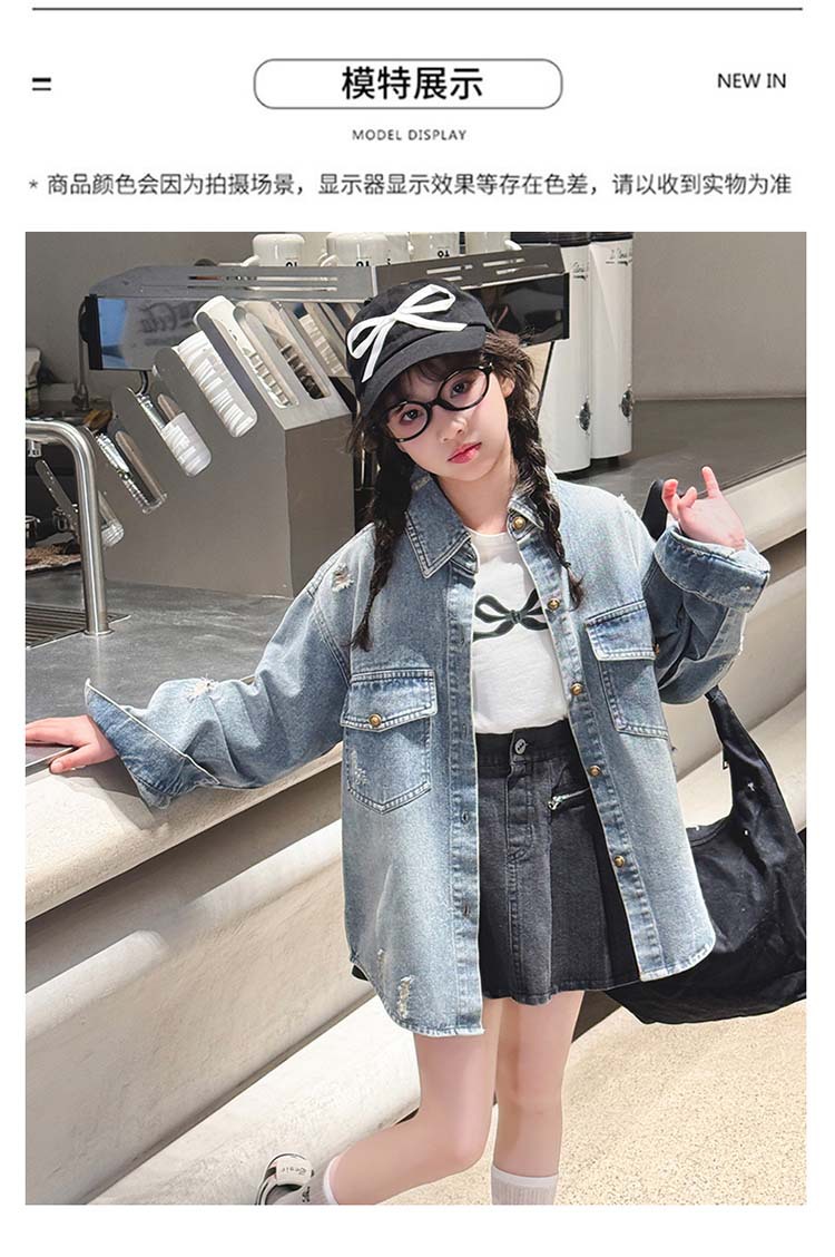여자 봄 중공업 리핑 데님 셔츠 재킷 2025 새로운 어린이 서양식 캐주얼 스포츠 재킷 윈드브레이커