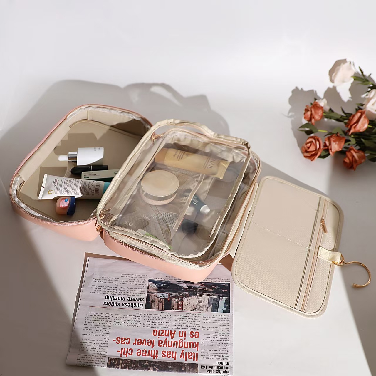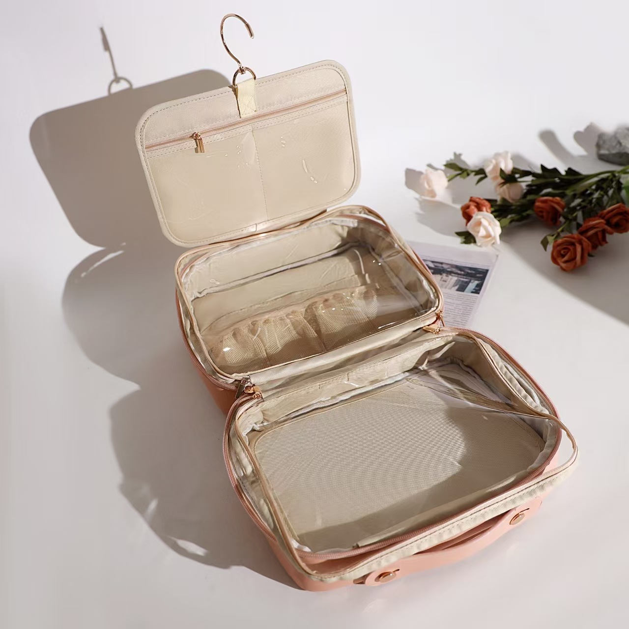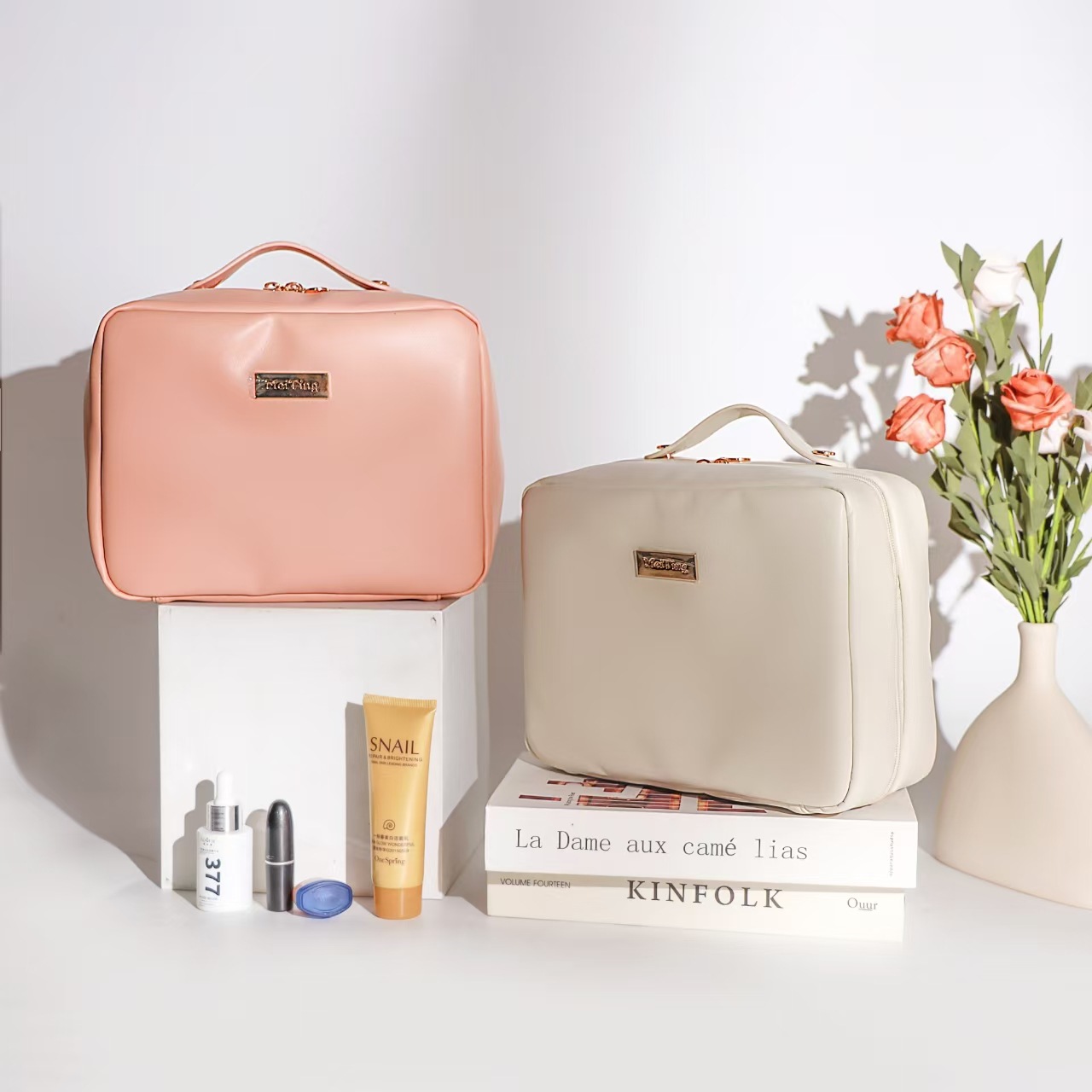 새로운 화장품 가방 피부에 민감한 PU 가죽 휴대용 여행 휴대용 저장 세척 가방 높은 아름다움 가치 간단한 대용량 가방