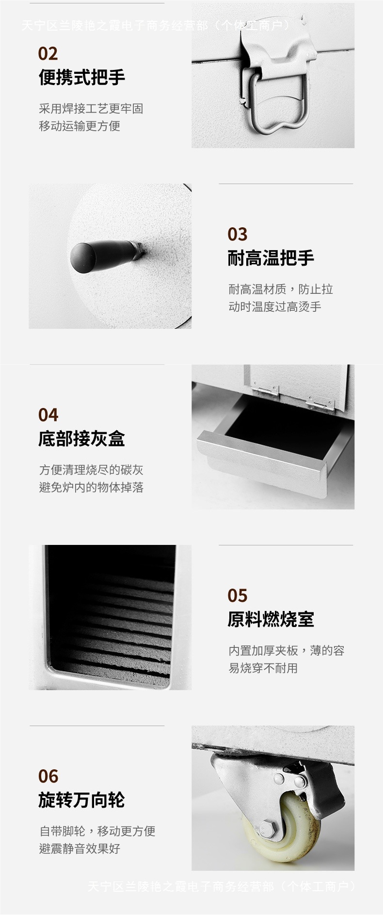 • 두꺼운 장작 숯 모형 9개의 큰 구멍/도어*바퀴