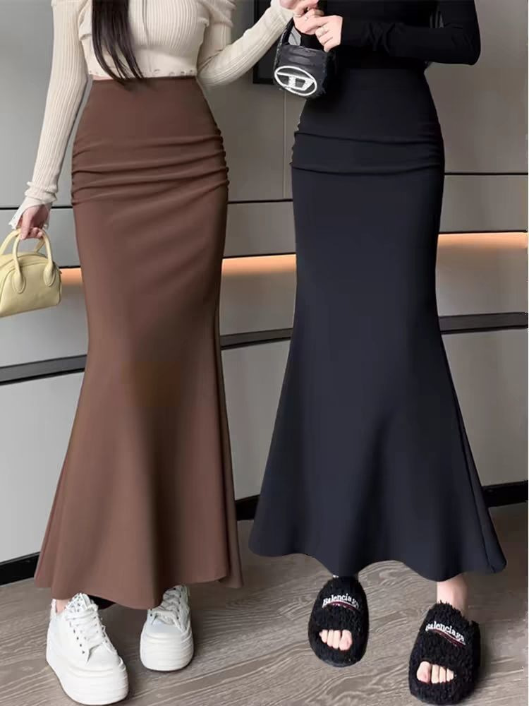 스커트 여성의 새로운 한국 패션 웨스턴 스타일 올 매치 힙합 스커트 높은 허리 슬리밍 솔리드 컬러 피쉬 스커트 재고 도매