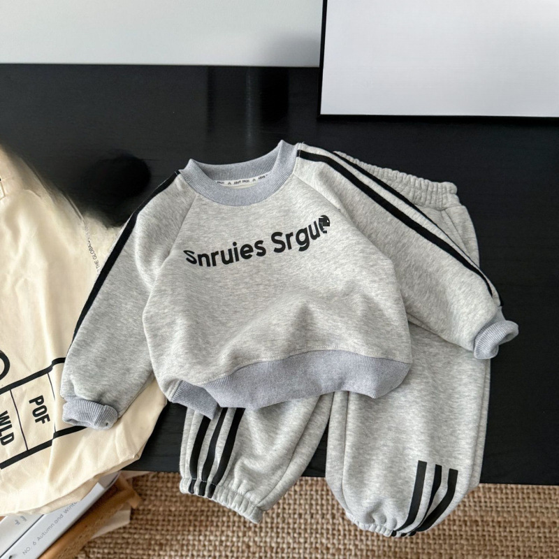 소년 소녀 플러스 벨벳 세트 가을 어린이 스웨터 2024 가을과 겨울 새로운 한국 스포츠 레저 외국 스타일 투피스 세트스토어 가기