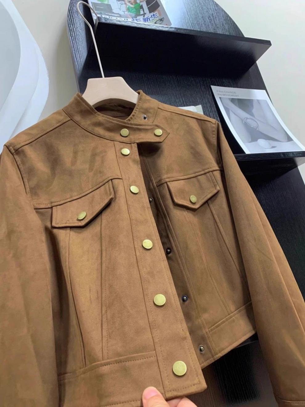 짧은 사슴 가죽 양털 코트 여성의 봄과 가을 새로운 2025 폭발 서양 스타일 인기있는 소형 하이 엔드 센스 재킷 탑스토어 가기
