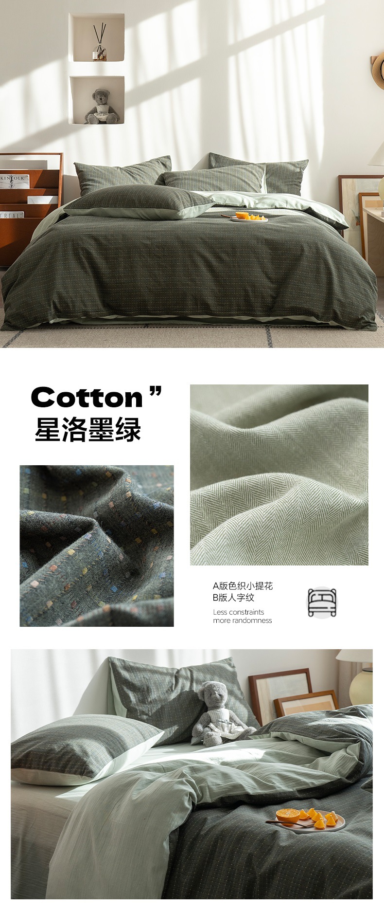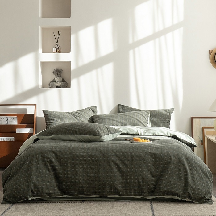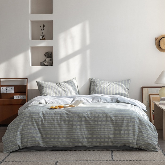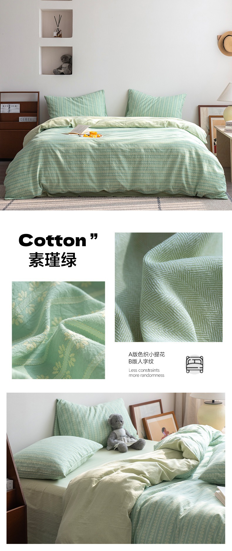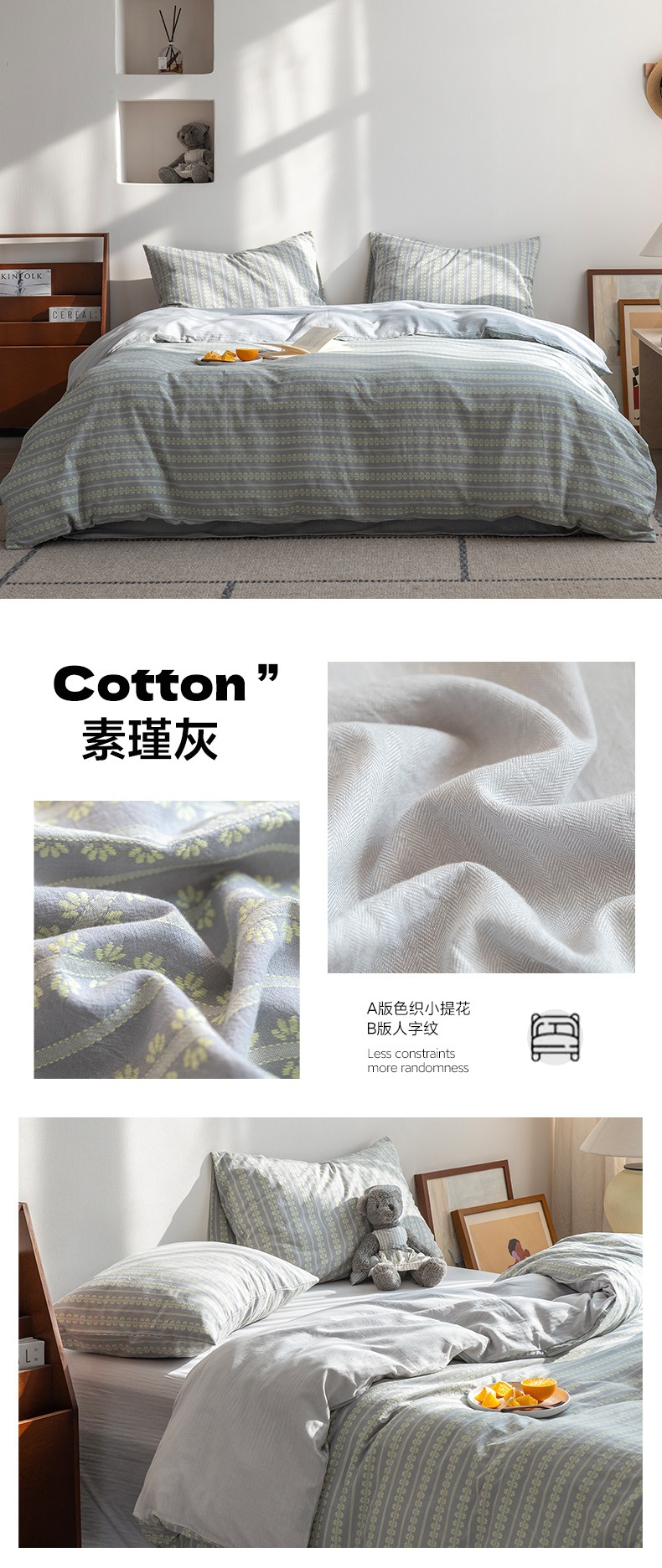 2025 새로운 면사 염색 작은 자카드 코튼 퀼트 커버 침대 시트 침구 4 피스 세트