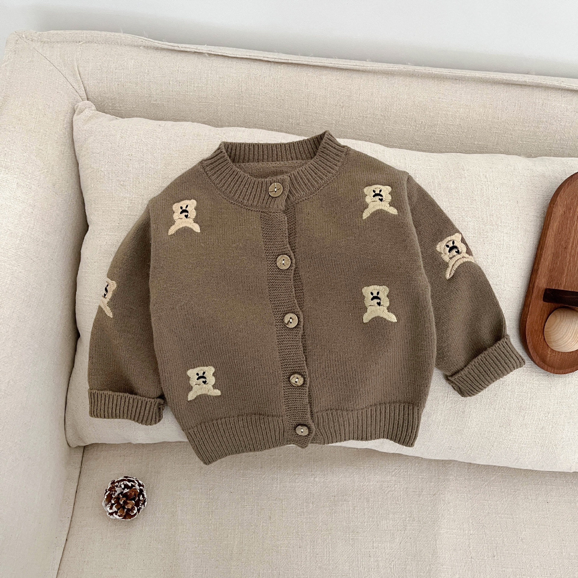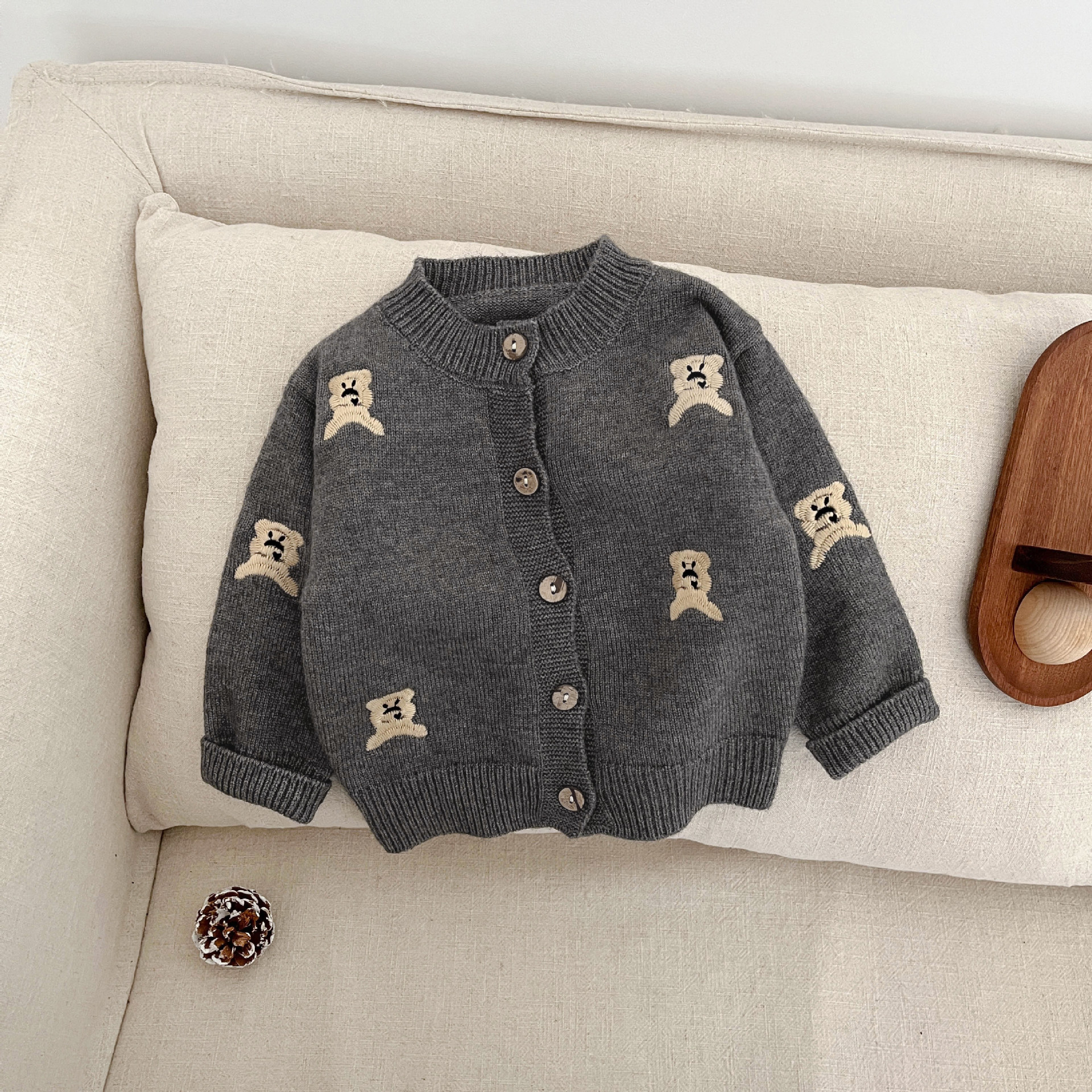 소년 소녀 스웨터 2025 봄 새로운 어린이 한국식 만화 곰 한국식 니트 스웨터 긴팔 올매치 재킷